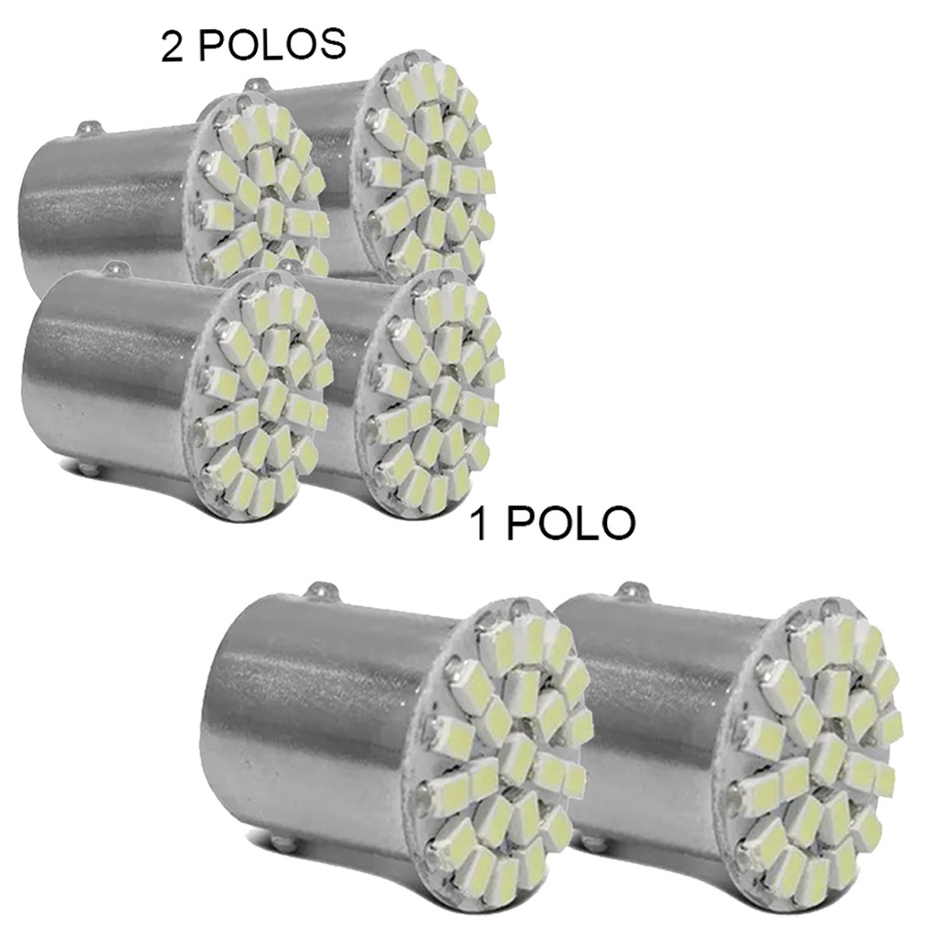 Kit 4 Lâmpadas 67BA15s 2 Polos 22 Leds+Par Lâmpadas 67 1 Polo c/ 22 Leds Para Carro