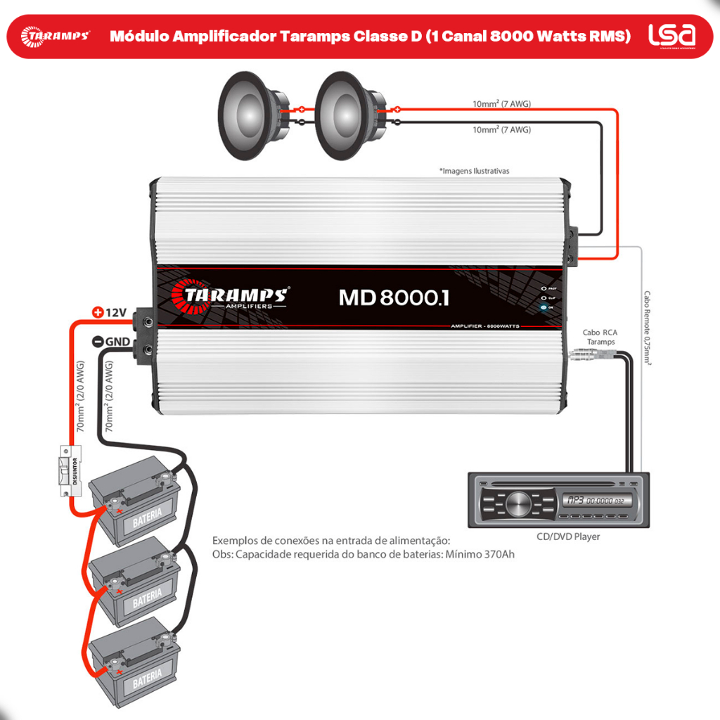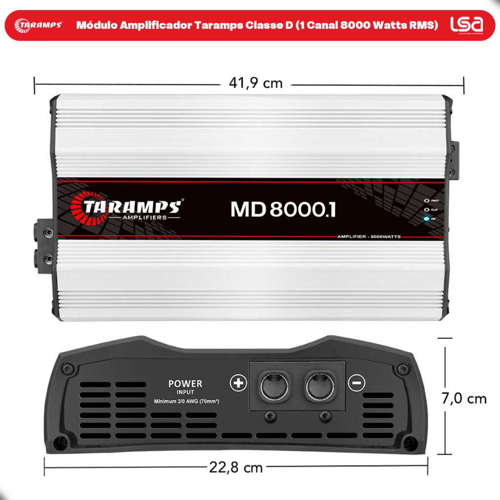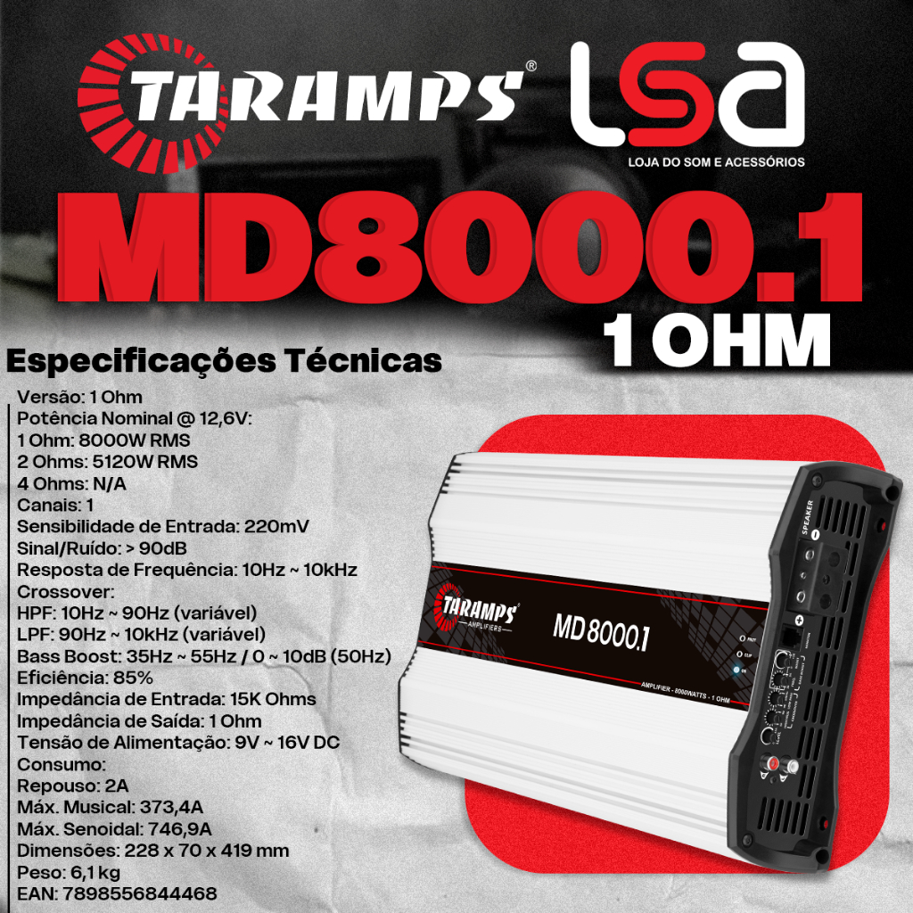 Modulo MD 8000.1 8000WRMS 1 Ohm Som Automotivo Taramps Full Range Subwoofer Potência Crossover