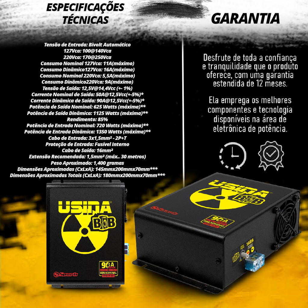 Fonte Automotiva 90a Amperes Bivolt Automatico Bateria Caixa Bob