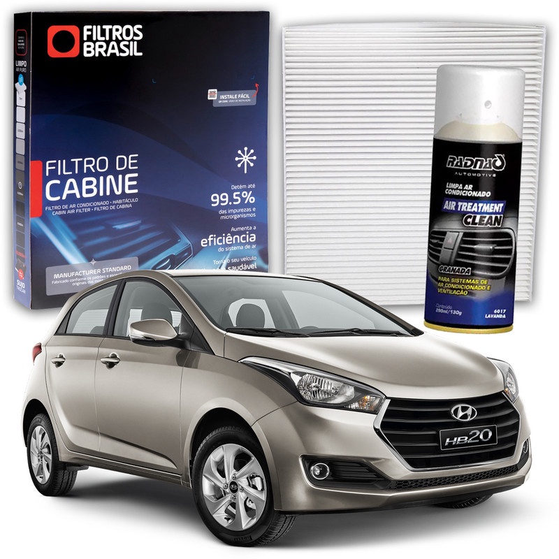 Filtro de Cabine P/ Carro Hyundai HB20 e Higienizador Limpa Ar Tipo Granada