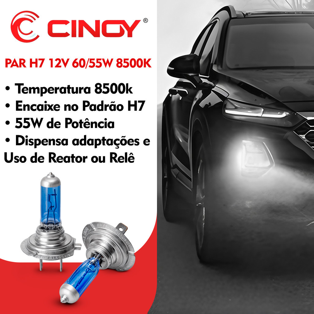 Kit Par Lâmpadas Super Branca Tipo Xenon H7 8500K 55W P/ Carro CINOY