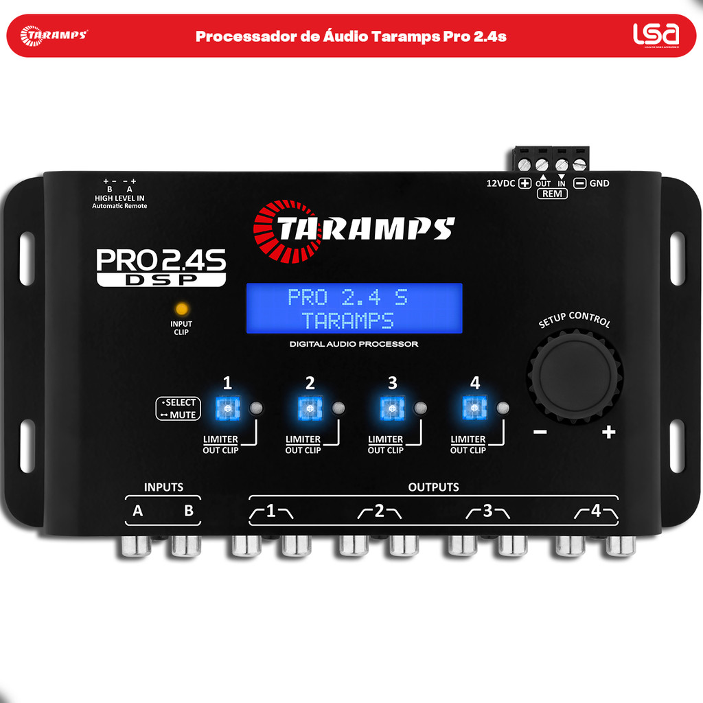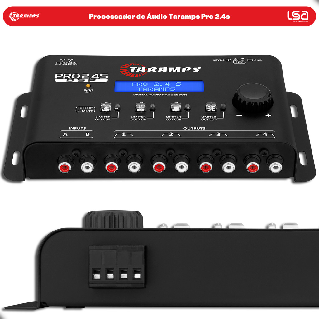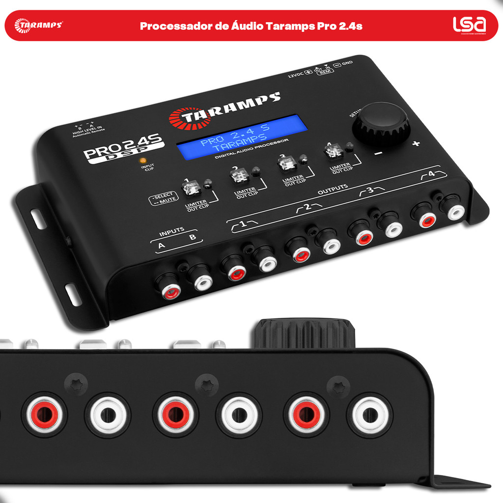Processador de Áudio Taramps PRO 2.4s 4 Vias - Anti-Puff Crossover Bass Boost Profissional e Relógio