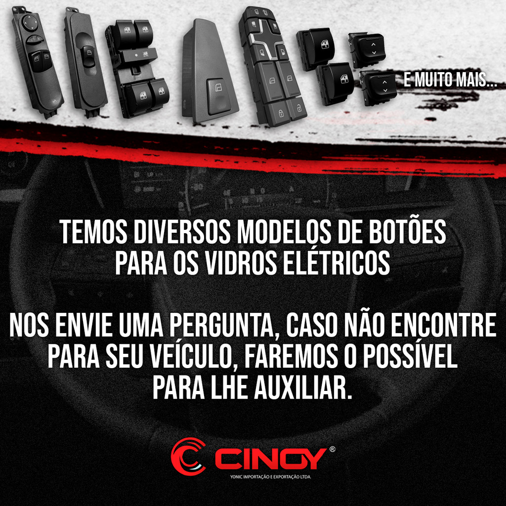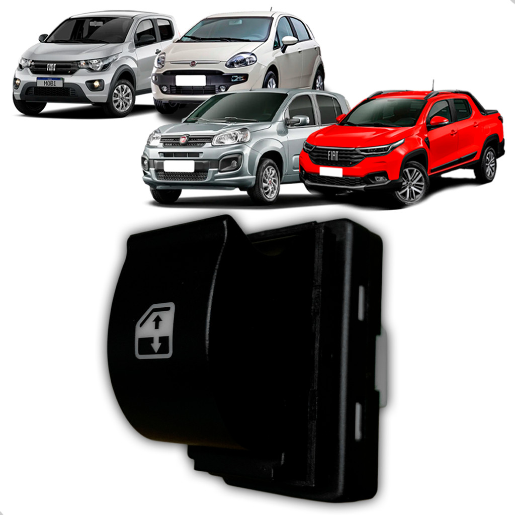 Comando Vidro Elétrico Simples 1 Botão Porta Passageiro LED Branco Fiat Mobi Uno Strada Punto