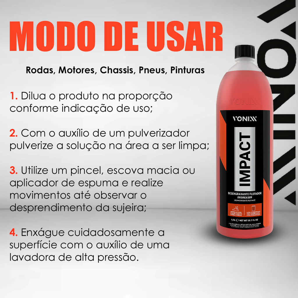 Desengraxante Impact Vonixx 500ml - Ultra Concentrado para Limpeza Profunda de Chassis, Pneus e Carpetes Ecologicamente