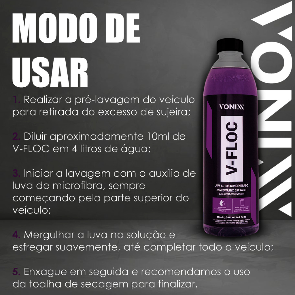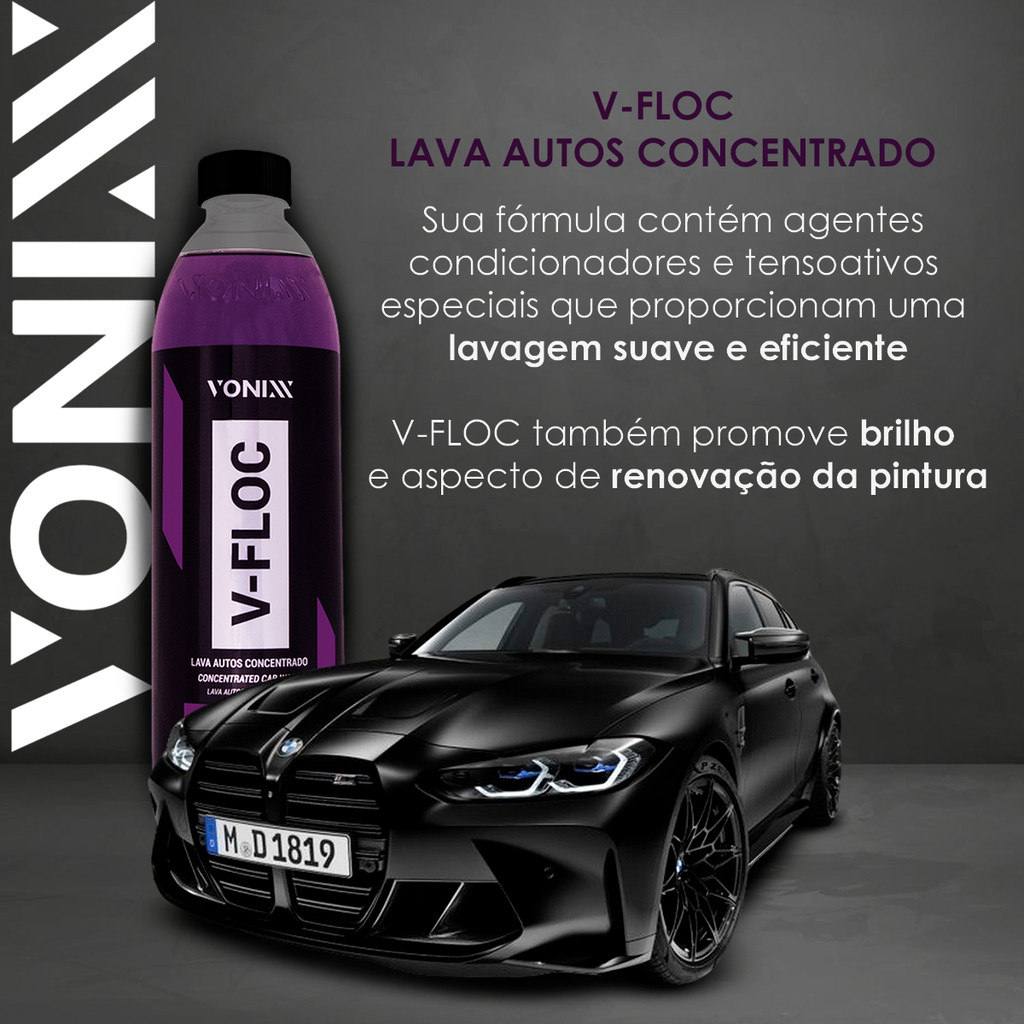 Shampoo para Carros V-Floc Vonixx 500ml - Limpeza Segura com pH Neutro, Reduz Micro-riscos e Renova a Pintura do Veículo