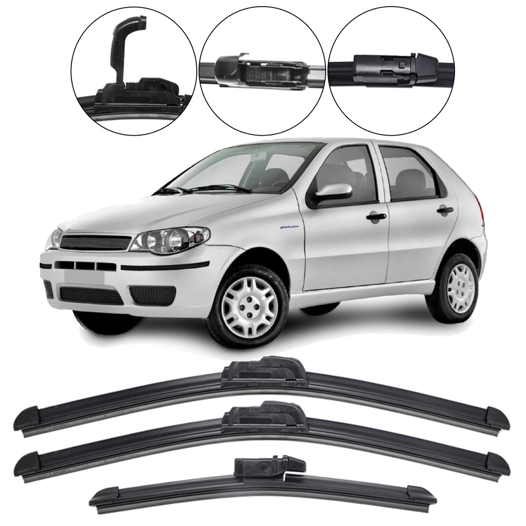 Kit 3 Palhetas Limpador Parabrisa Dianteiro e Traseiro Palio G3 2004/2014