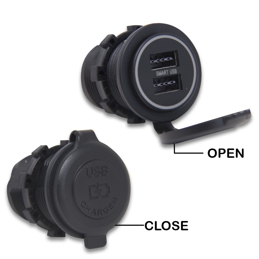 Carregador USB Universal Redondo Roadstar, 2 Entradas, para Carro, Moto, Caminhão e Barco