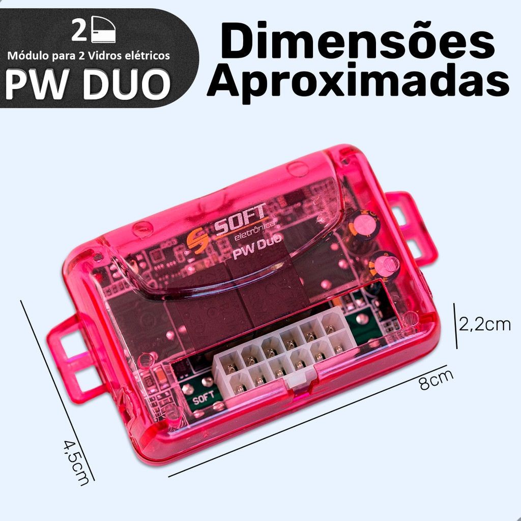 Módulo PW Duo Vidros Elétricos Automação 2 Vidros 2 Portas Rosa Anti-esmagamento Universal Automotivo