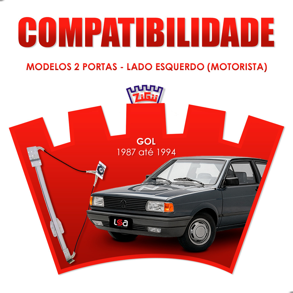 Máquina Vidro Manual Lado Esquerdo Motorista Volkswagen Gol Parati Saveiro Voyage 2 Portas 1987 a 1996