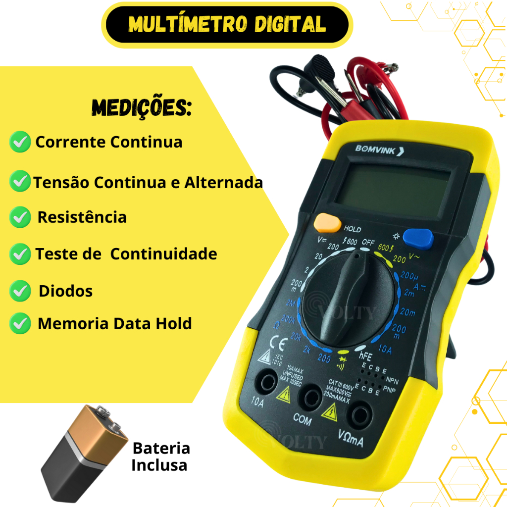 Multímetro Digital Profissional Iluminação Bipe Bateria E Pontas