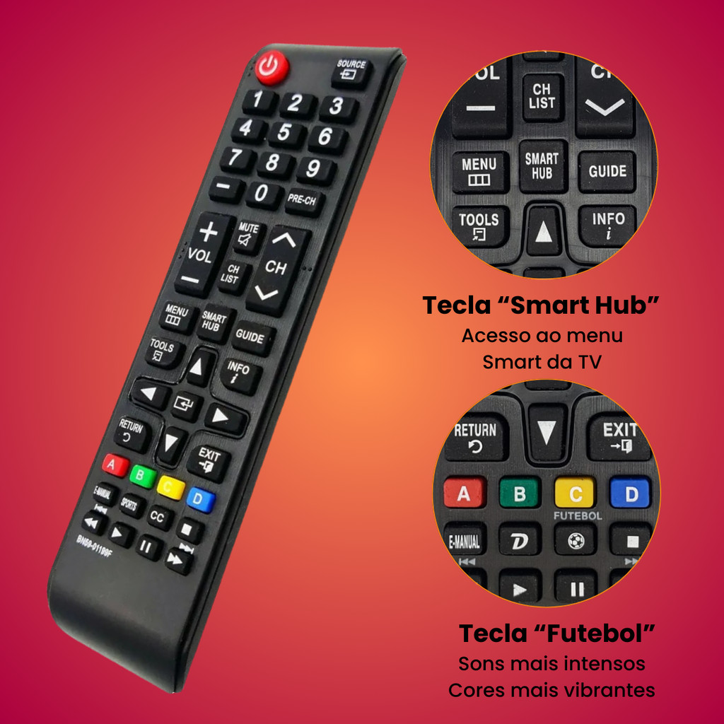 Controle Remoto Compatível Com Samsung Tv 4K Smart Hub - Escolha Seu Kit