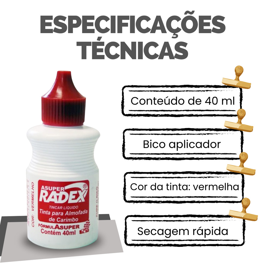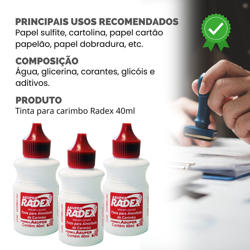 Kit 3 Tinta Vermelha Para Almofada De Carimbo Radex 40ml Refil