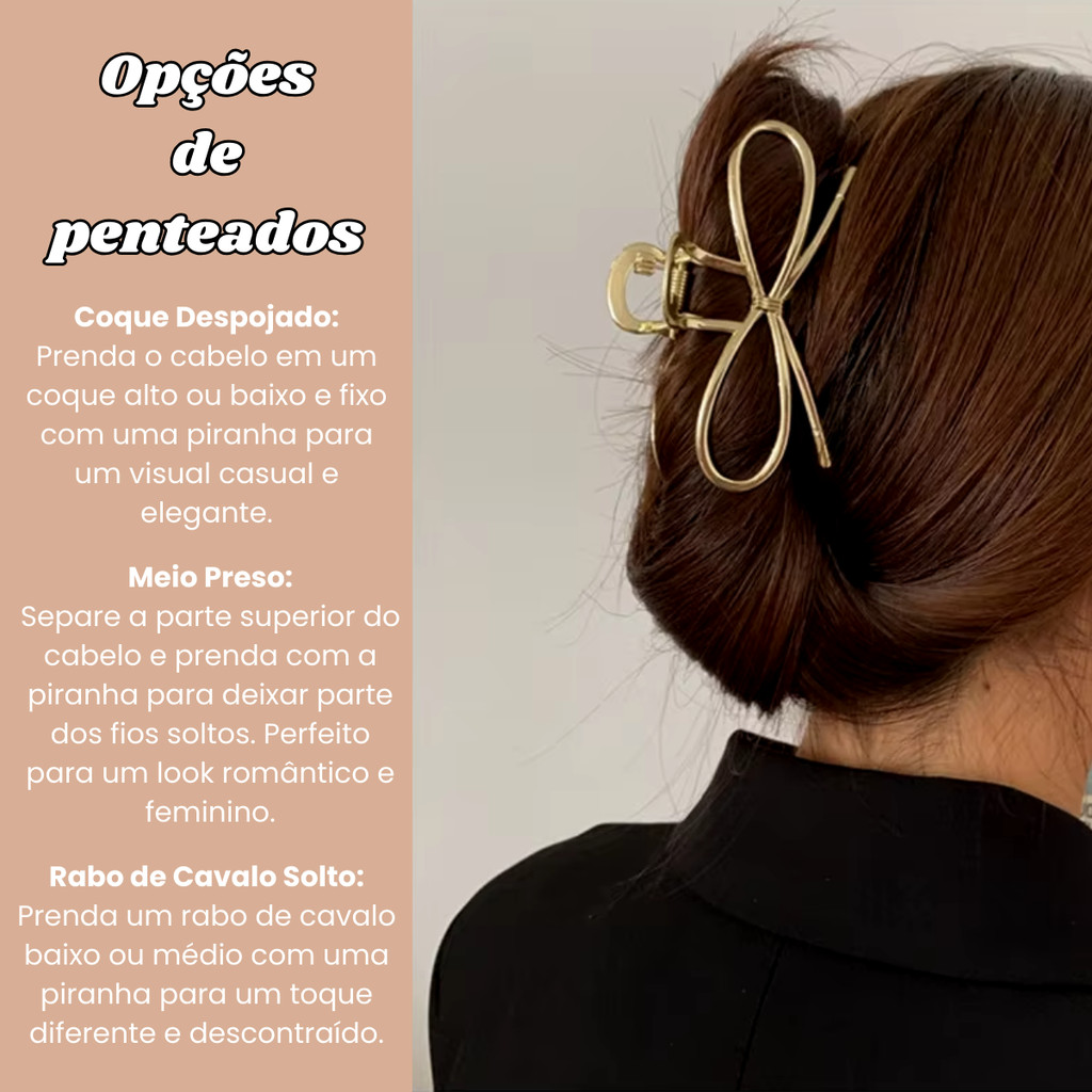 Presilha De Metal Prendedor Piranha Modelo Lacinho Cabelo Elegante