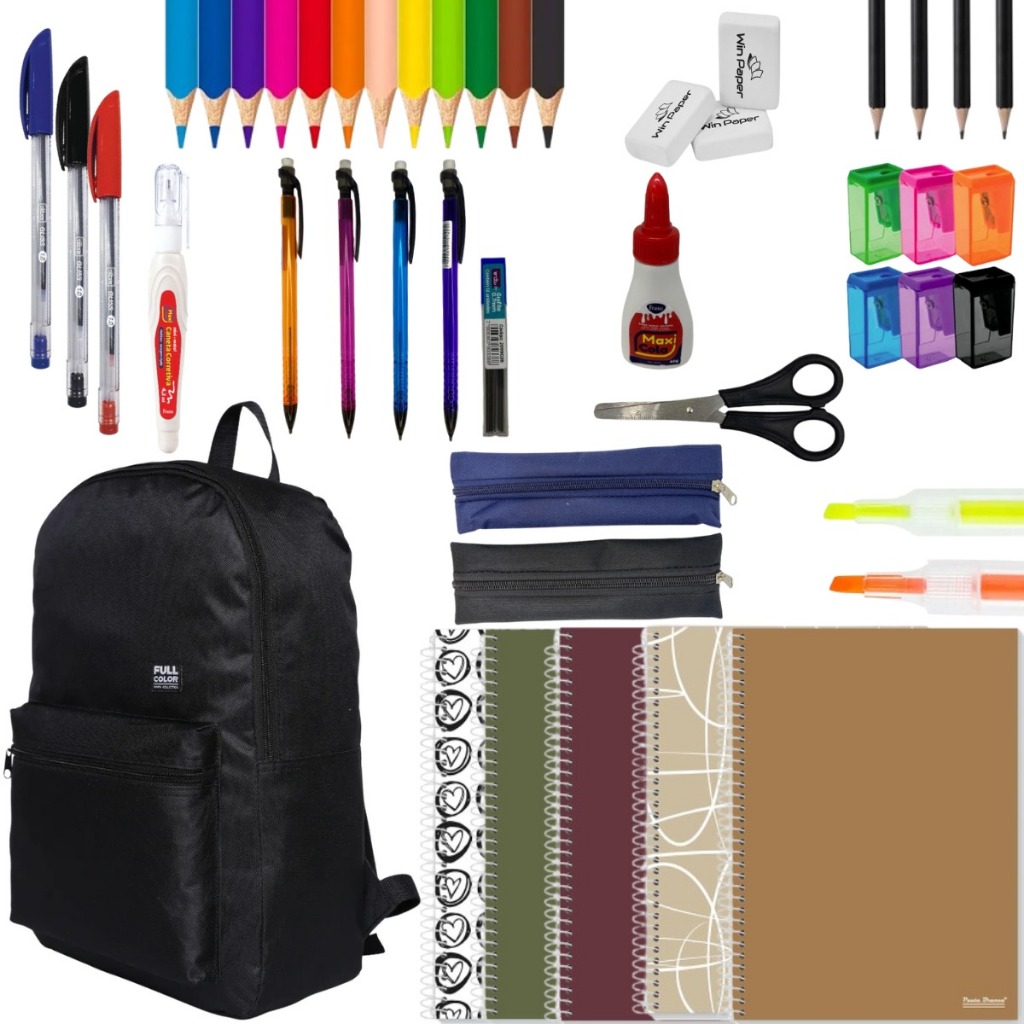 Kit Material Escolar 29 Itens Volta As Aulas Mochila Ensino Médio Faculdade Fundamental Completo