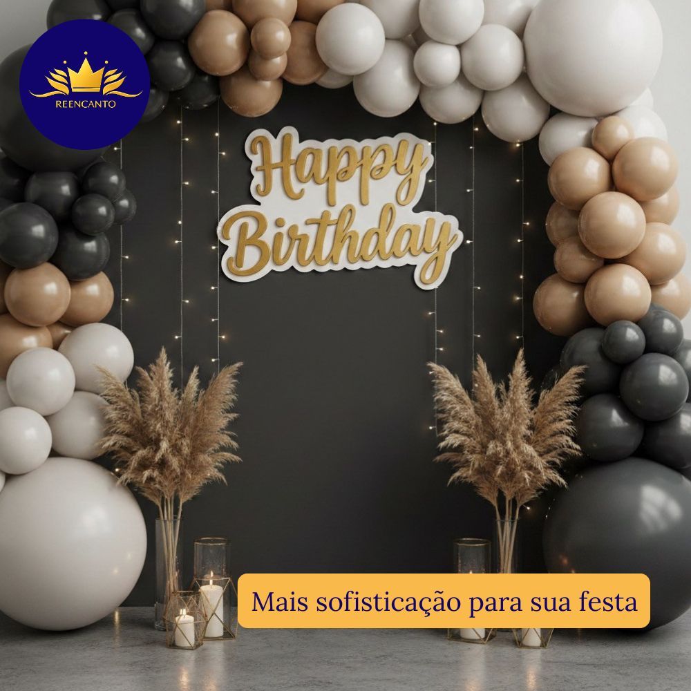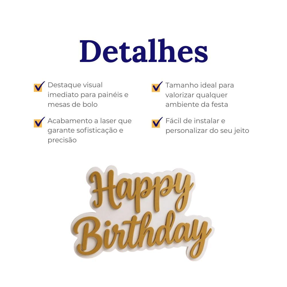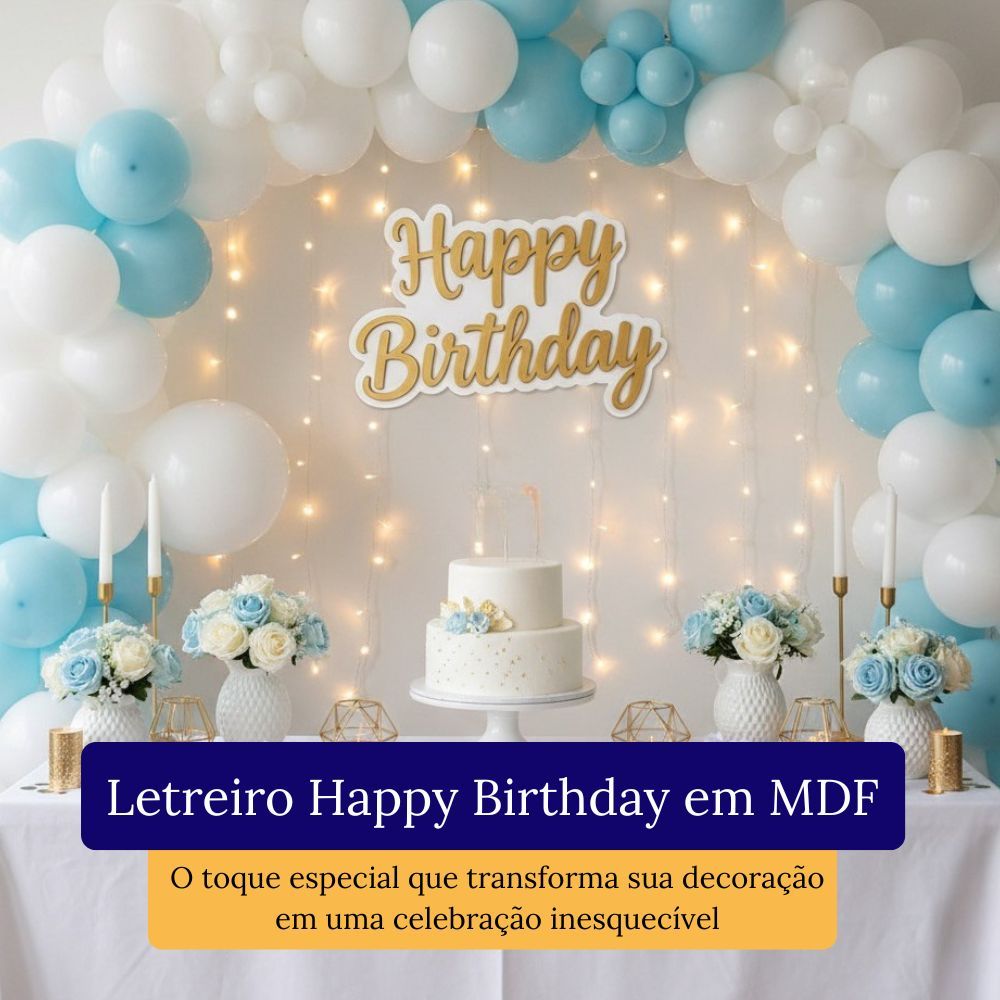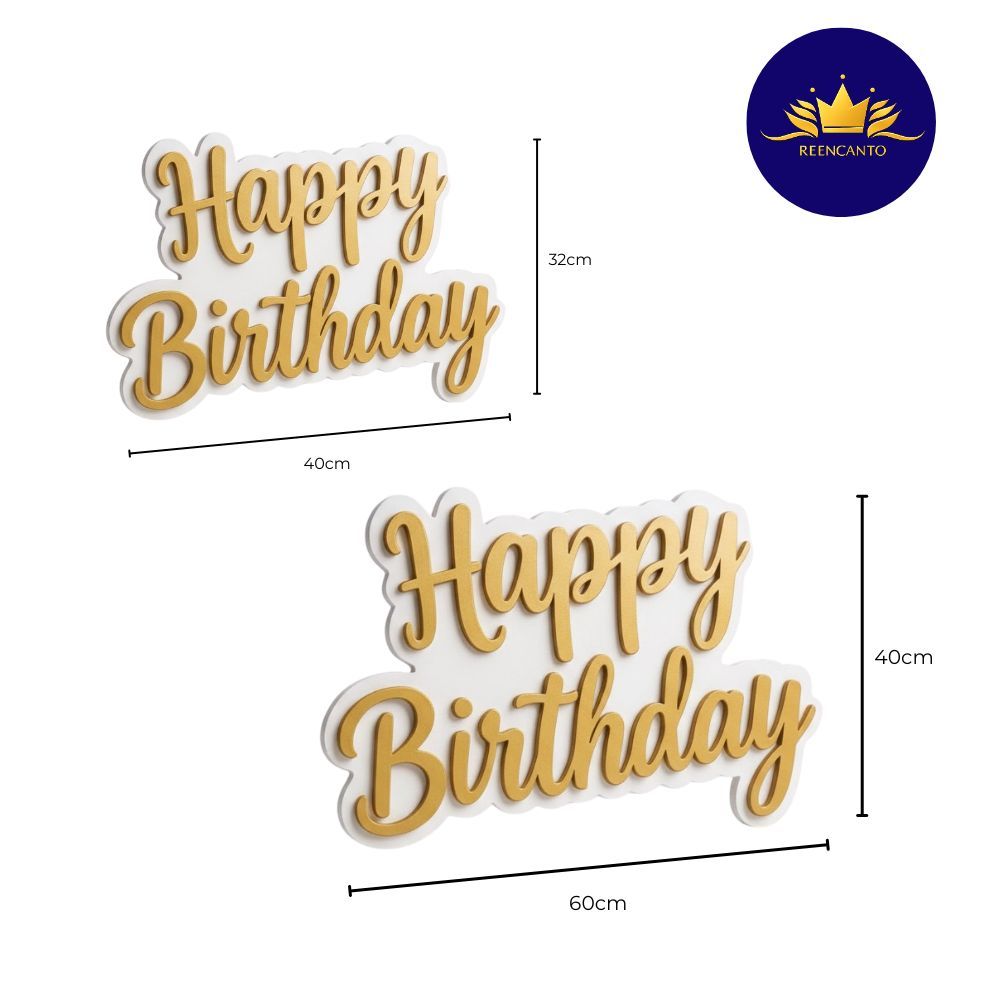 Letreiro MDF Happy Birthday 60x40 Decoração Festa Aniversário Placa Painel Parede Infantil Adulto