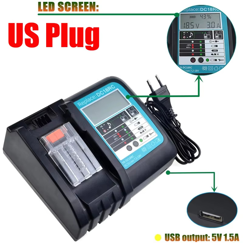 Carregador De Bateria DC18RF DC18RC Para Makita 14.4V/18V De Íon-Lítio Com Carregamento De Tela LCD USB BL1830 BL1815