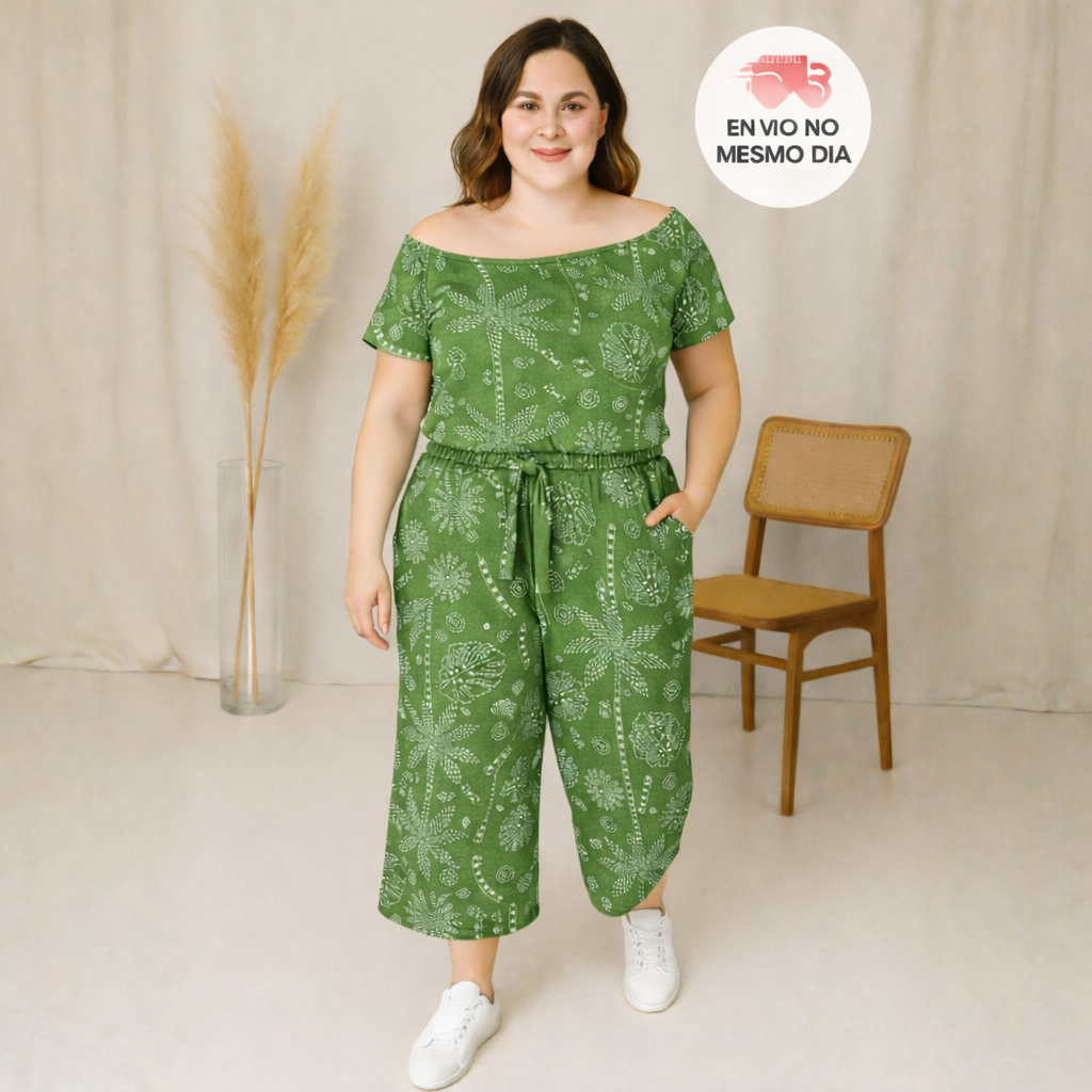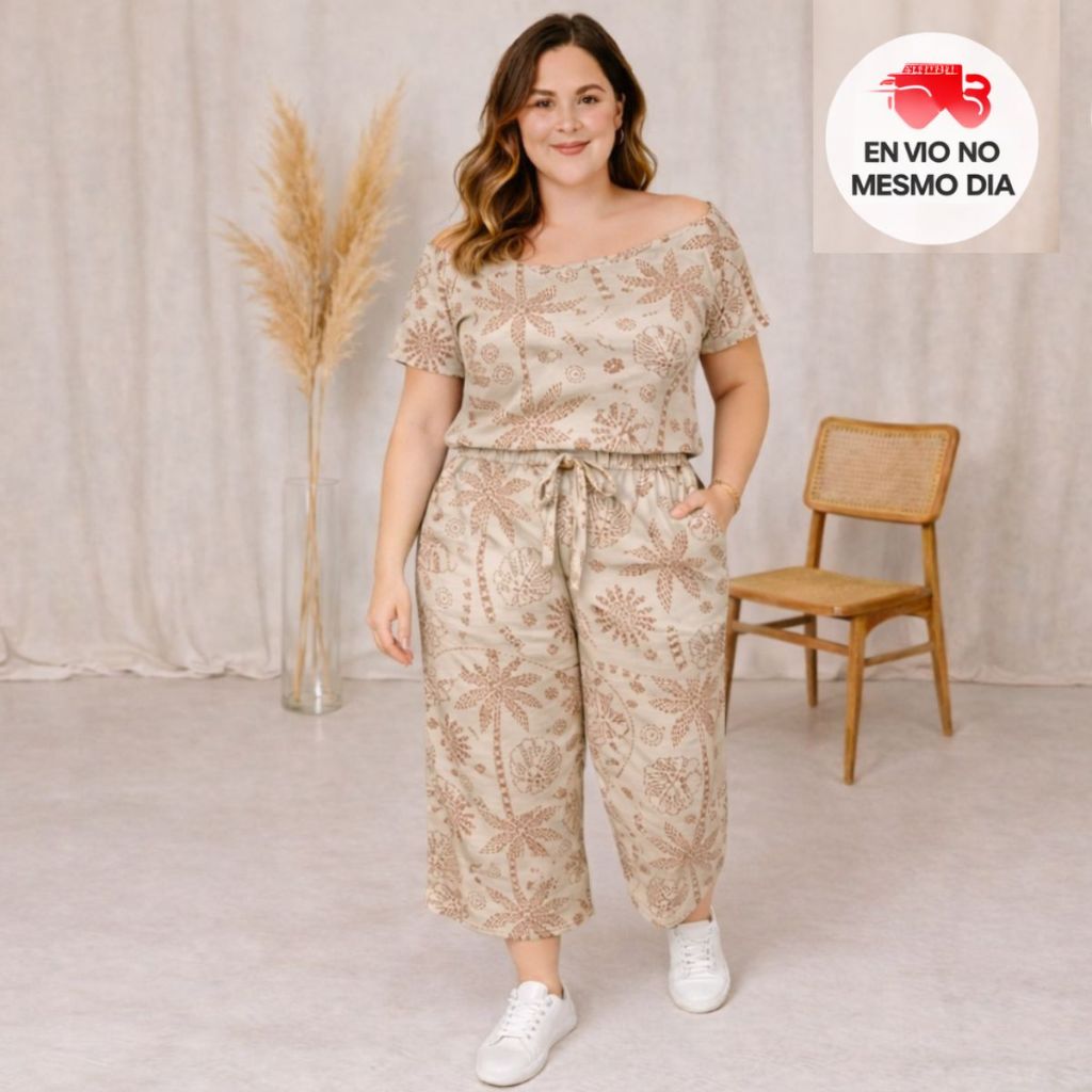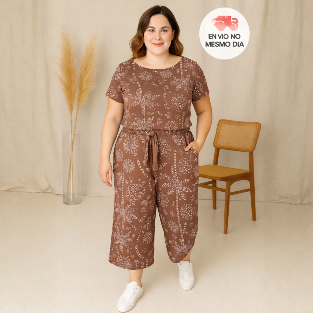 Conjunto Pantacourt Plus Size Feminino casual com manga curta estampado