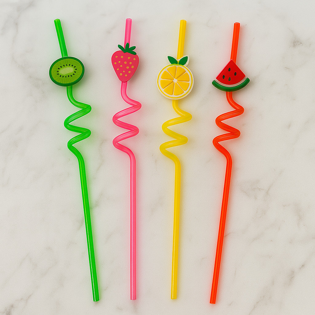 Kit Canudos Decorados com Frutinhas – 4 ~ 12 Unidades | Coloridos, Reutilizáveis e Divertidos