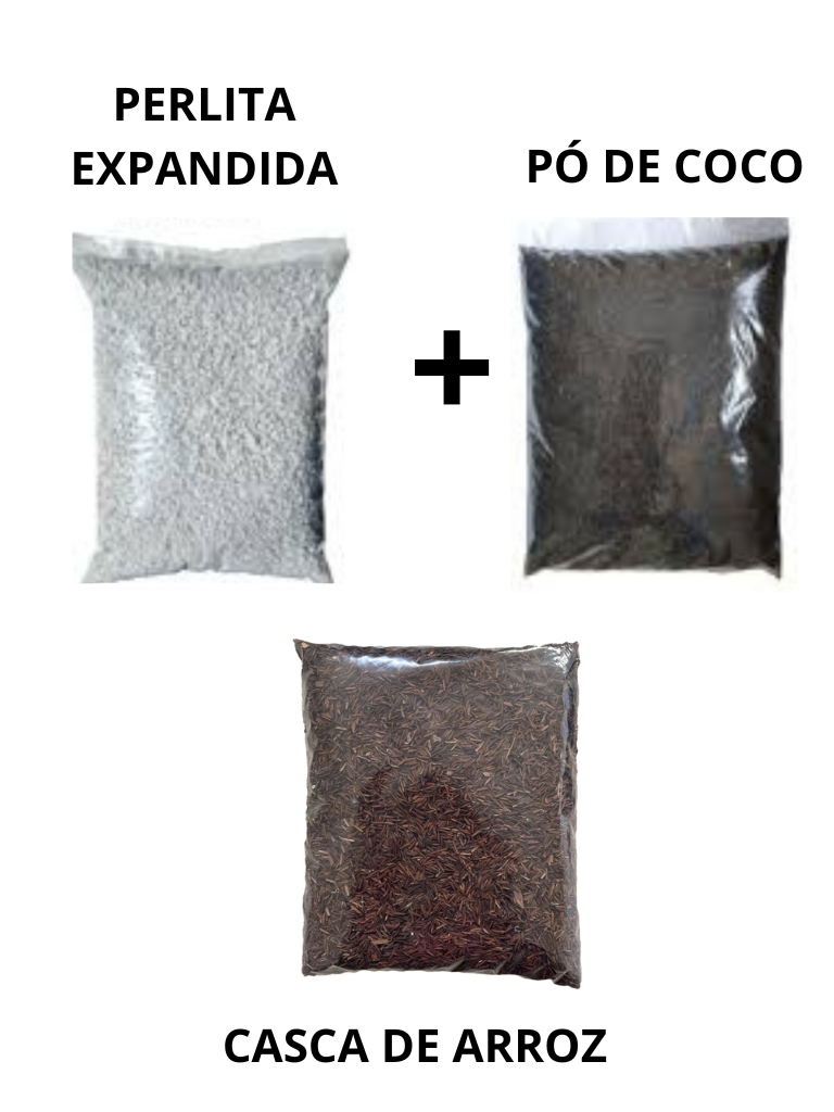 Casca de Arroz + Perlita + Pó de Coco 5L Cada | Orquideas Sucelentas Jiboia Costela-de-Adão Monstera