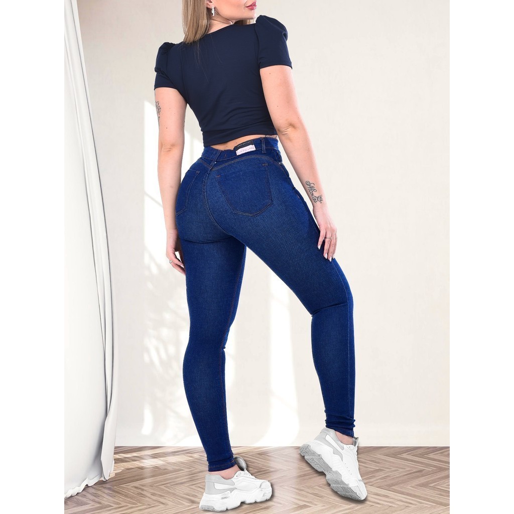 Calça Jeans Skinny feminina / com bolsos / muita Lycra / jeans Premium / cintura alta / Elastano / levanta bumbum