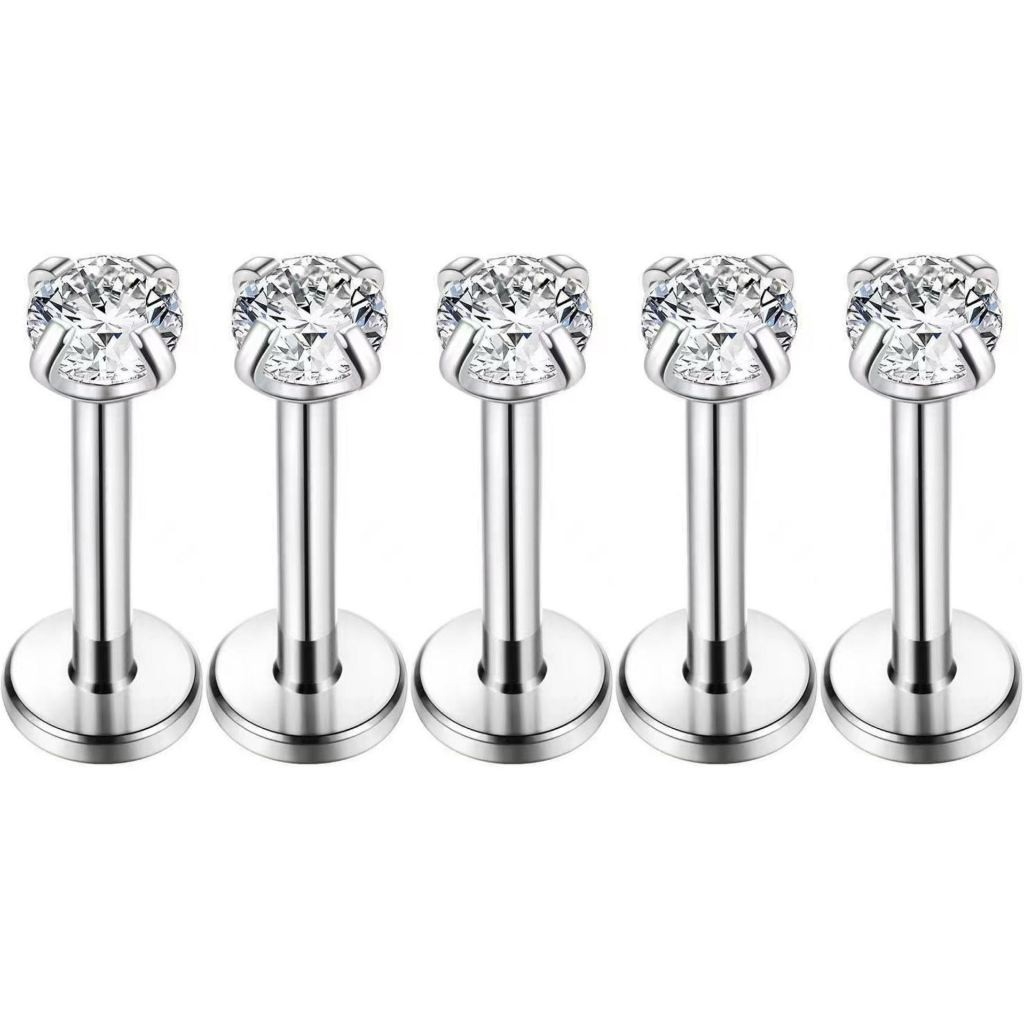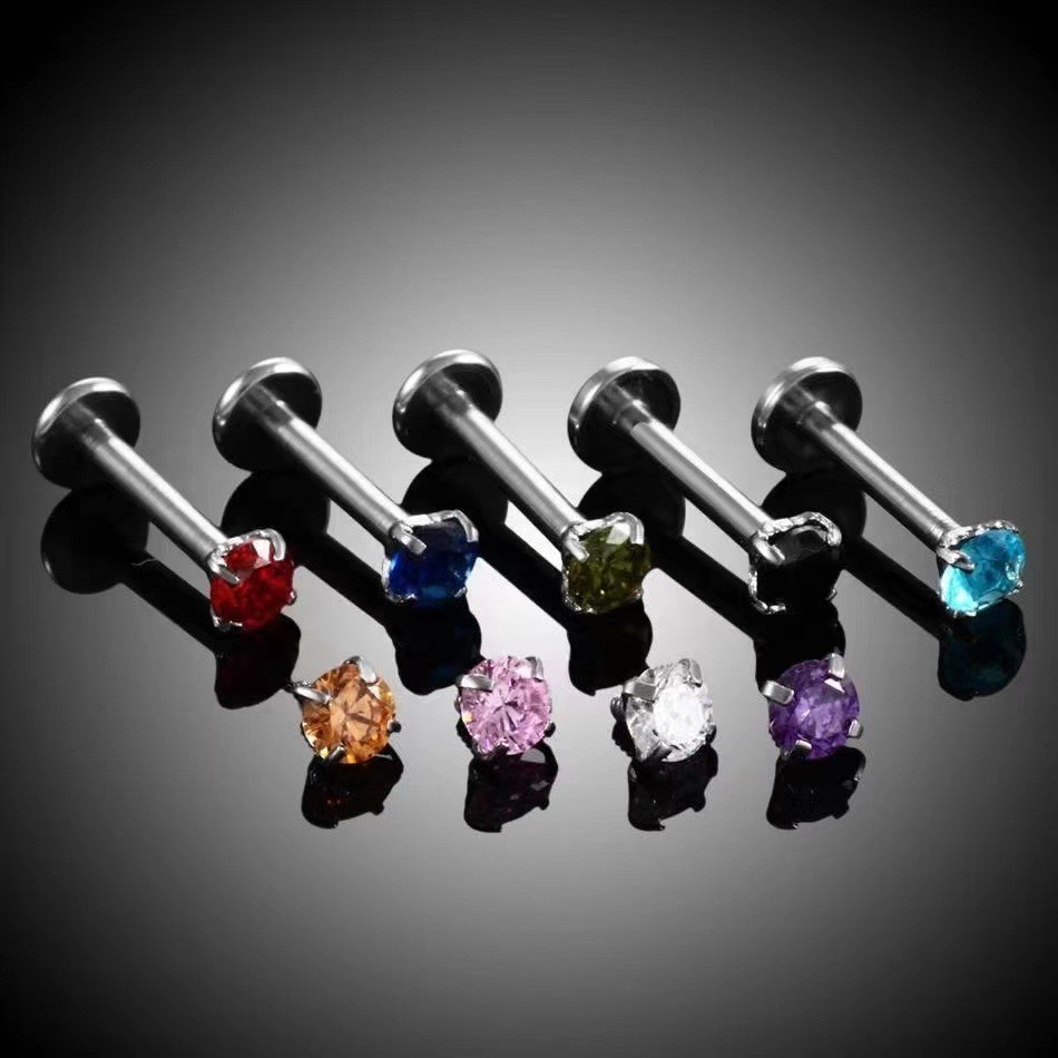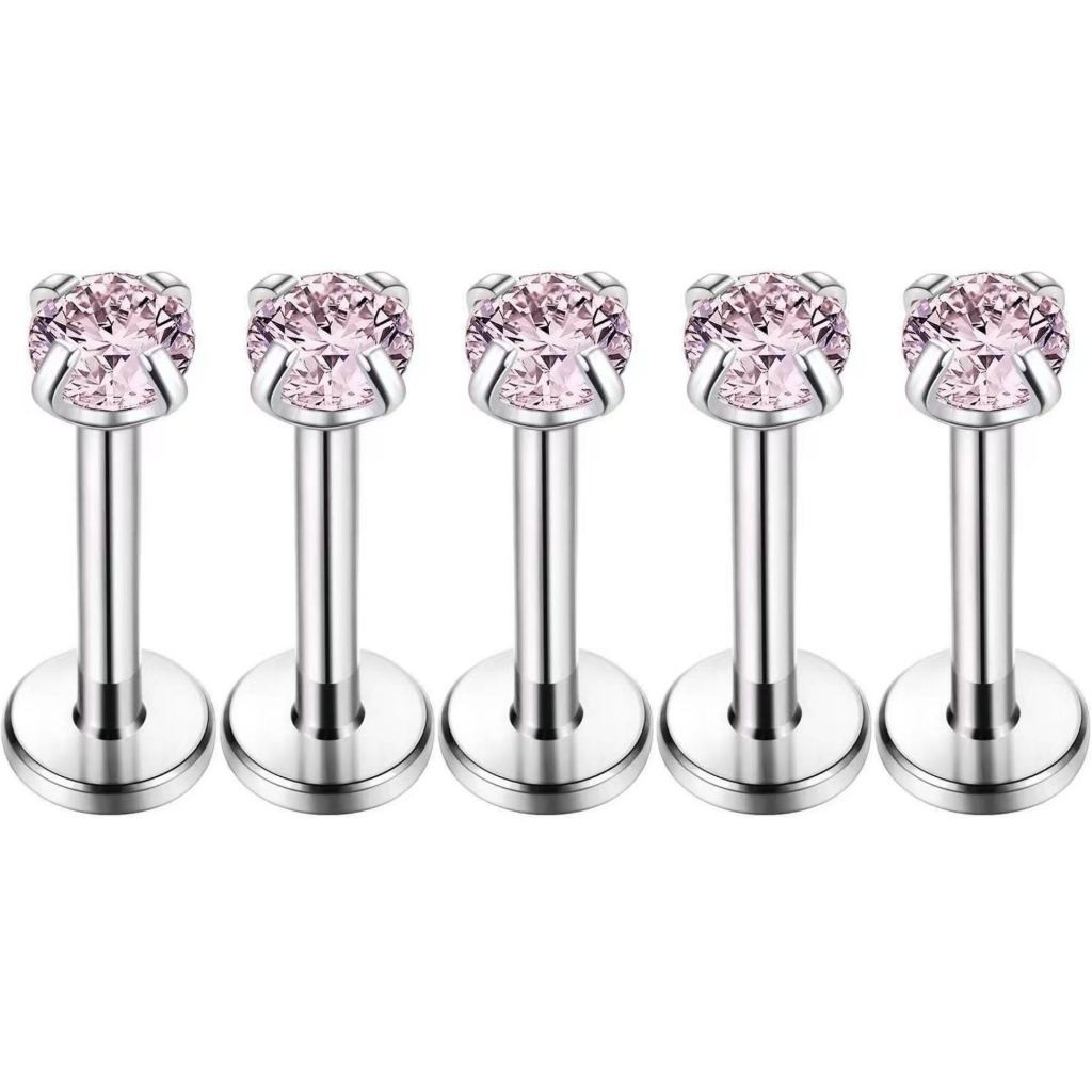 Kit 5 Piercing Ponto de Luz em Aço Cirúrgico Prateado com Zircônia 3mm Cravejada em Cores Diversas KA001