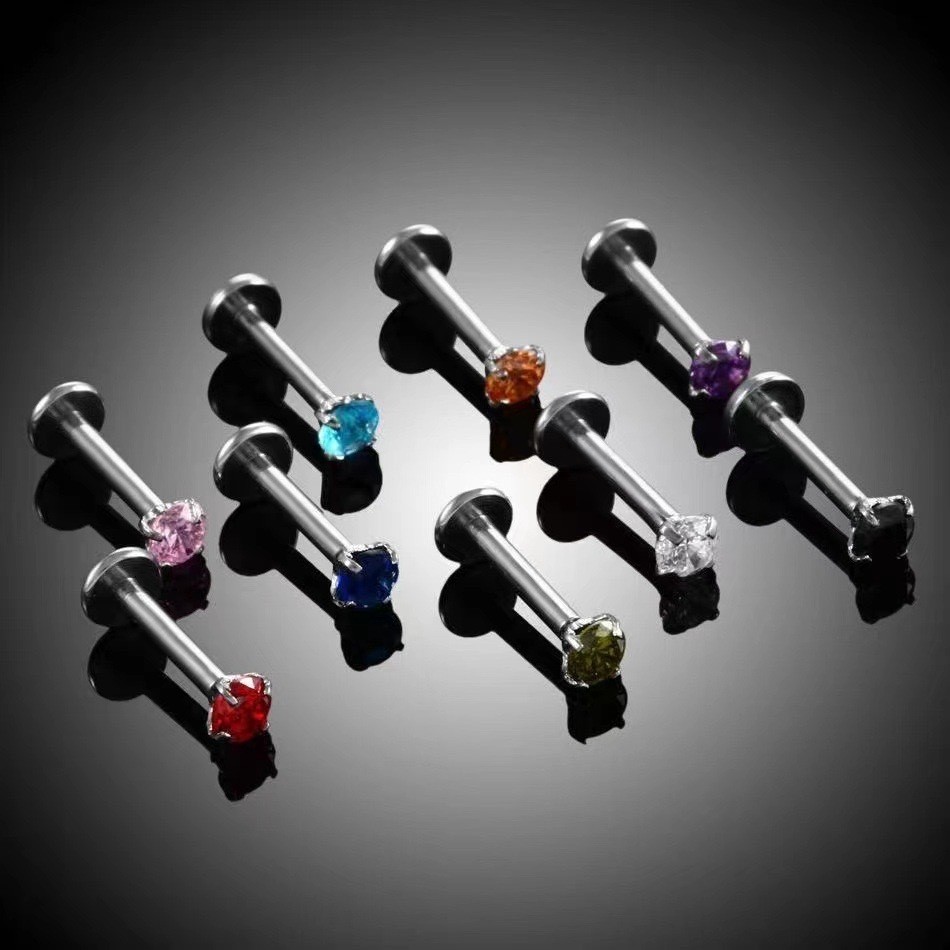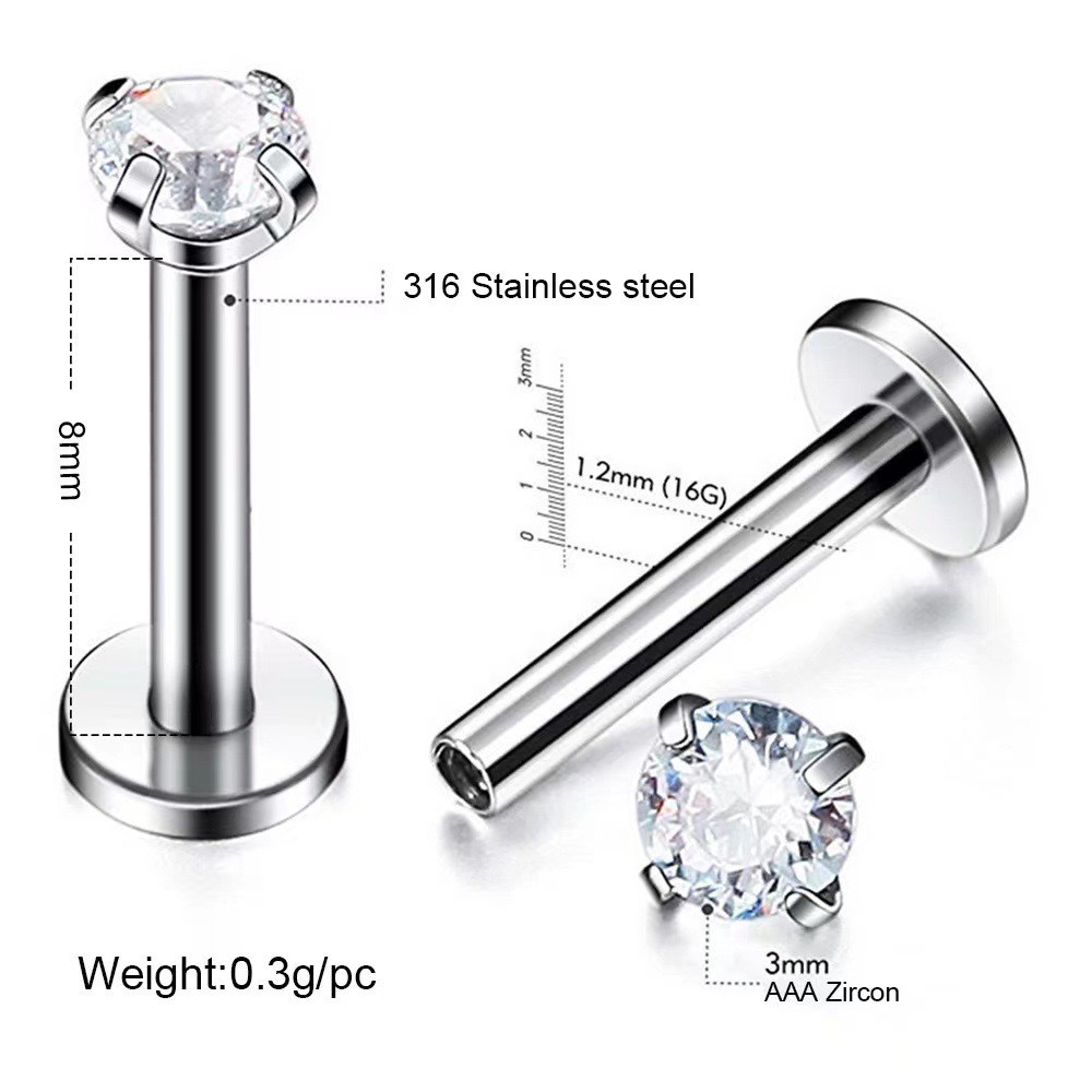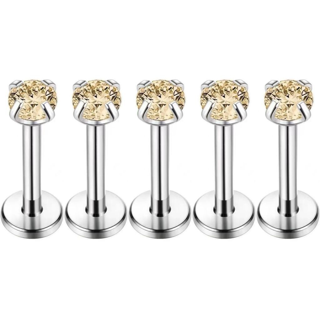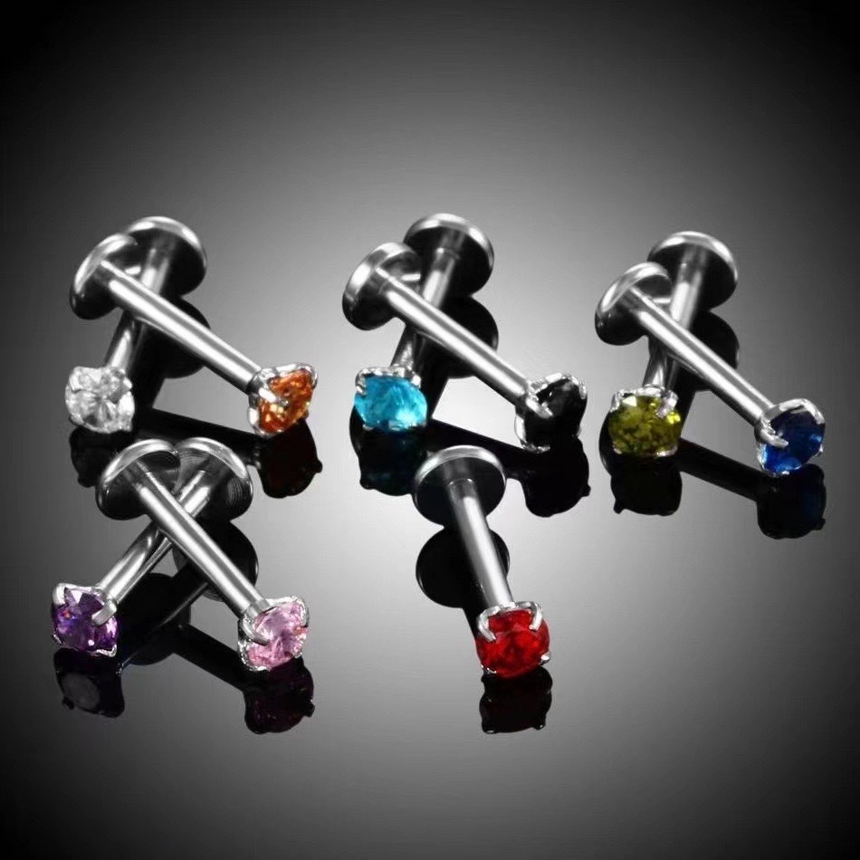 Kit 5 Piercing Ponto de Luz em Aço Cirúrgico Prateado com Zircônia 3mm Cravejada em Cores Diversas KA001