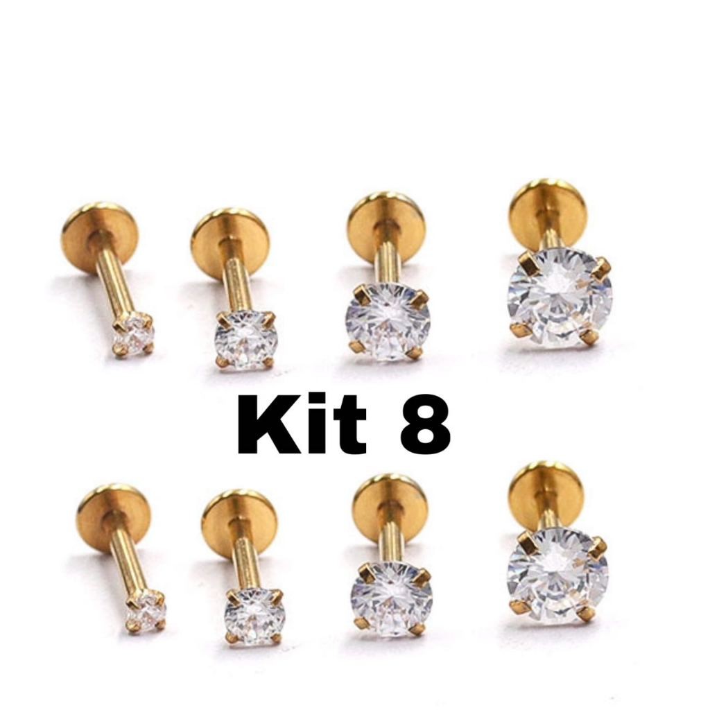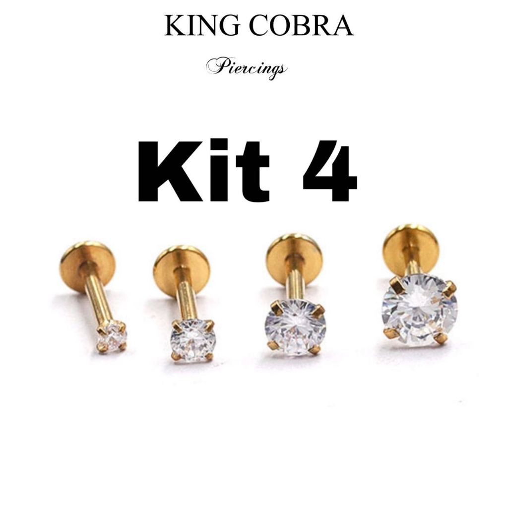 Kit4 Piercing Labret Ponto De Luz Helix Tragus Conch Aço Cirúrgico KA101