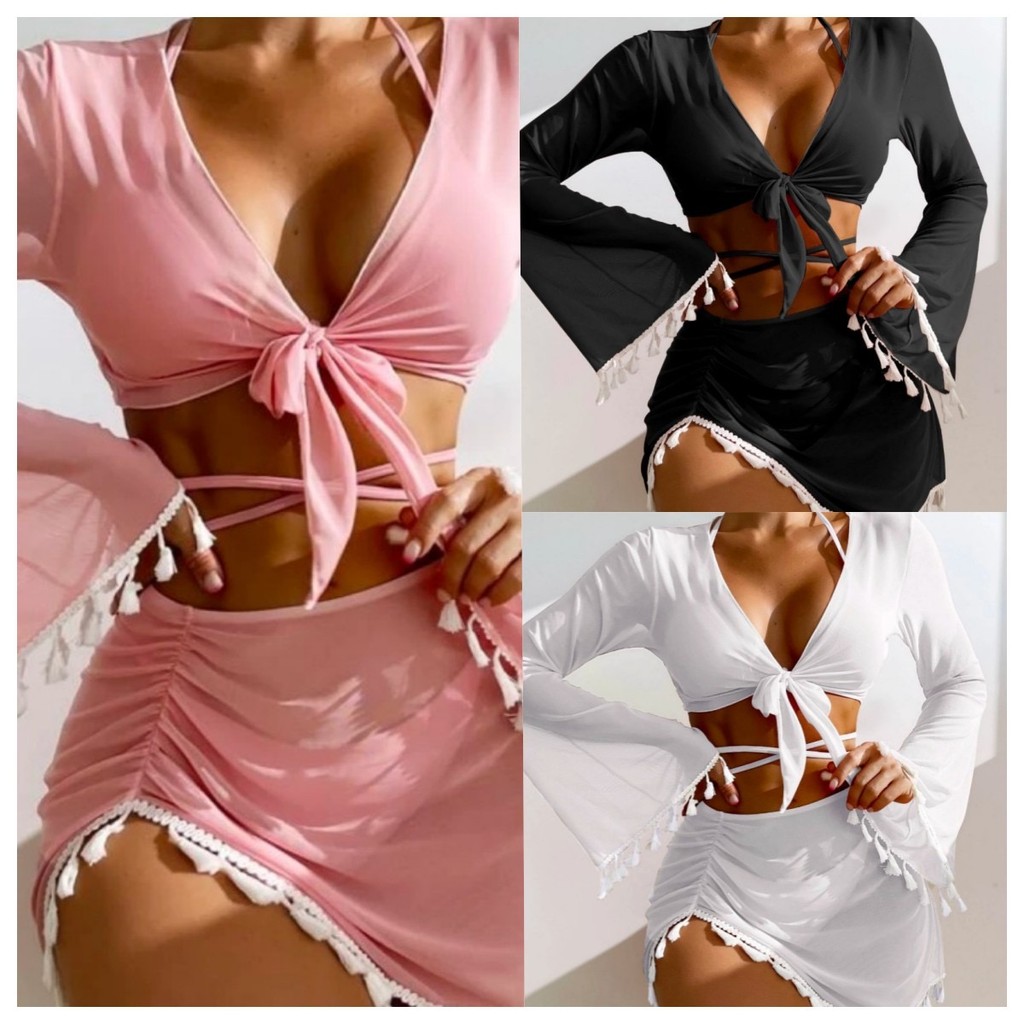 Kit Biquíni Feminino Cortininha Com Saída de Praia e Encobrimento