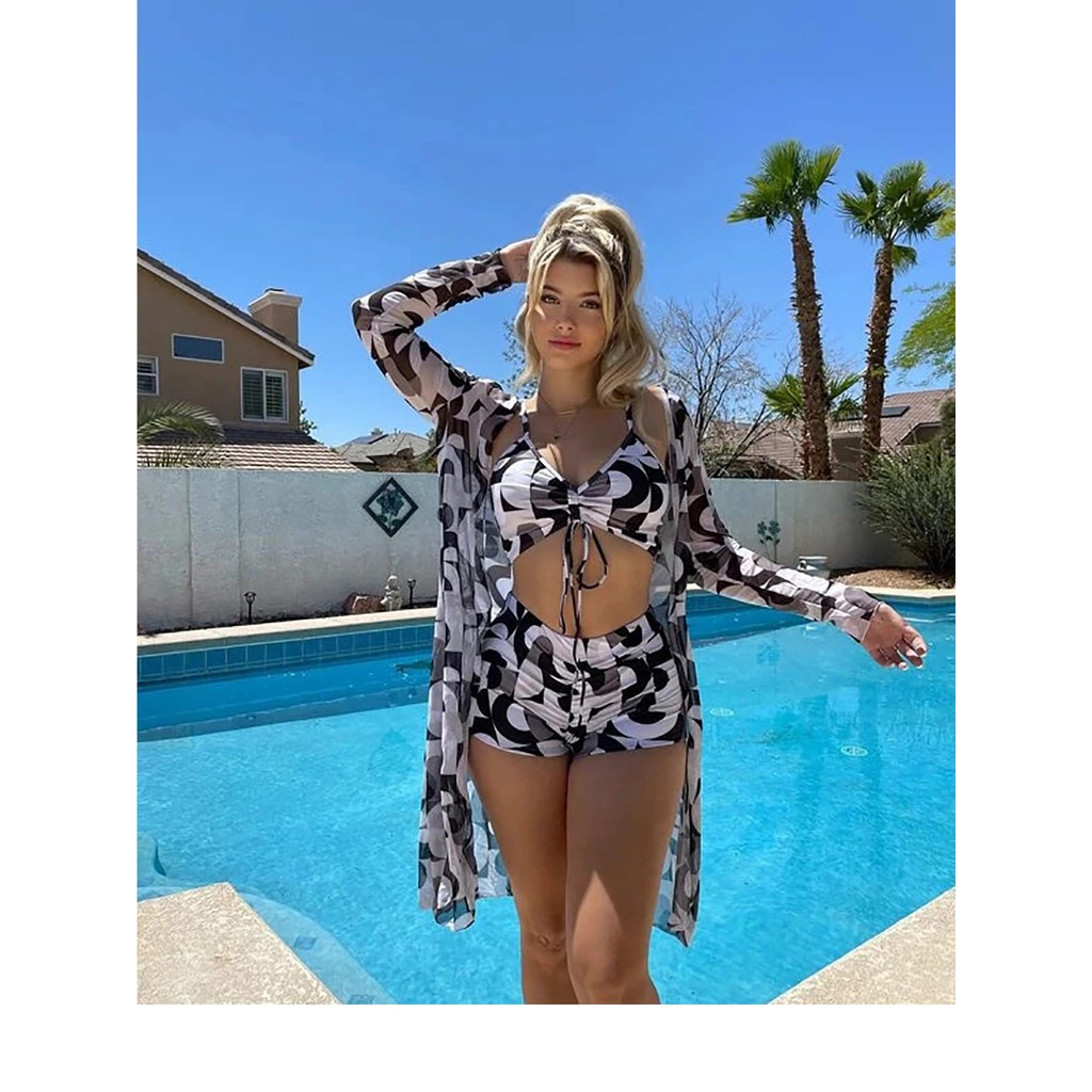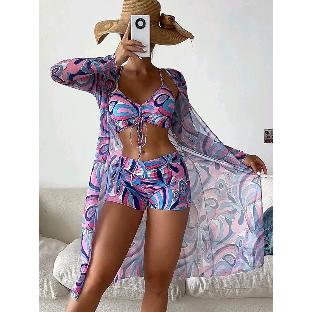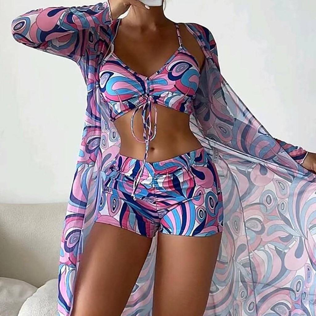 Conjunto De Biquíni Com Saia: 3 Peças Em Tecido Leve Estampa Floral Bojo Ajustável e Estilo Elegante