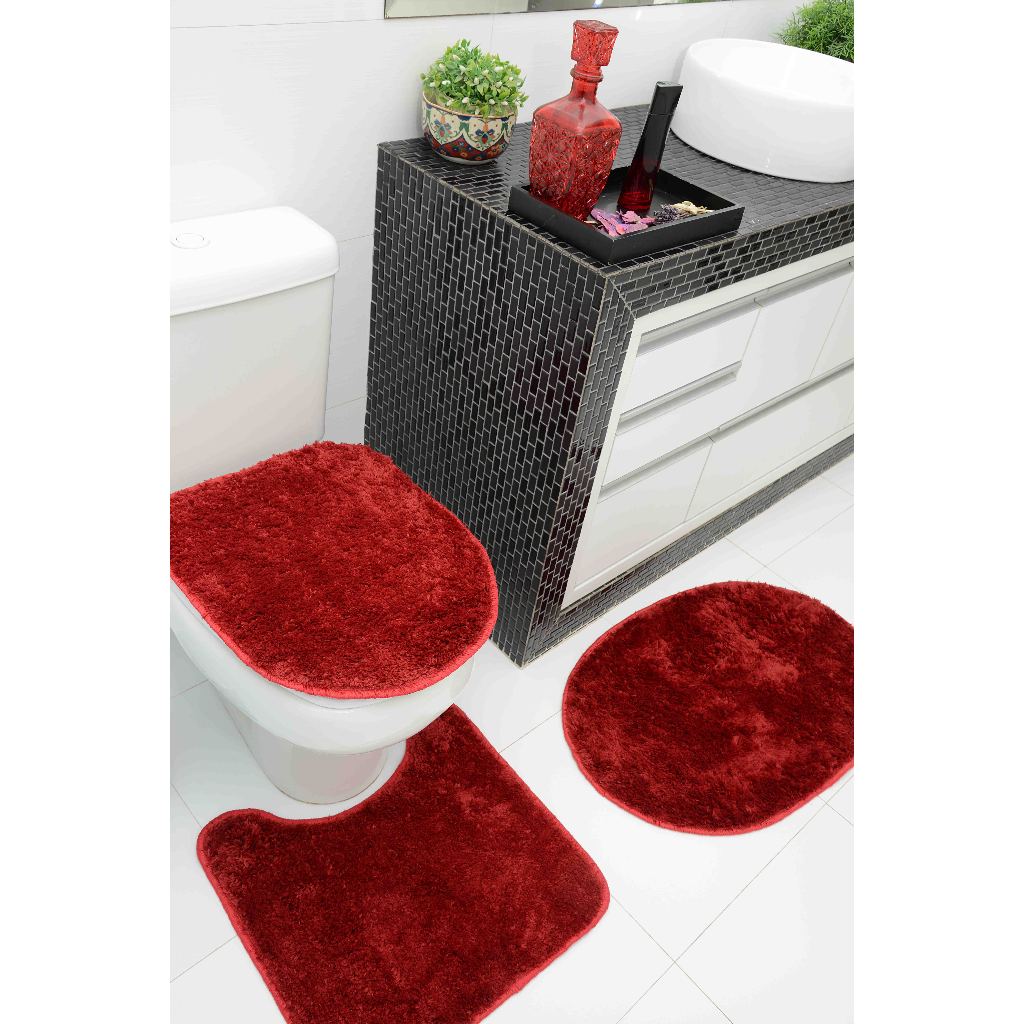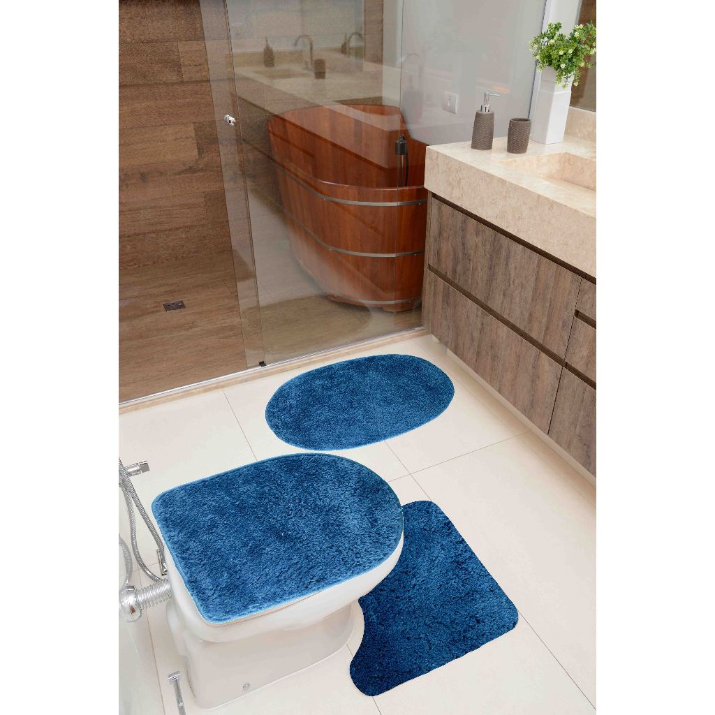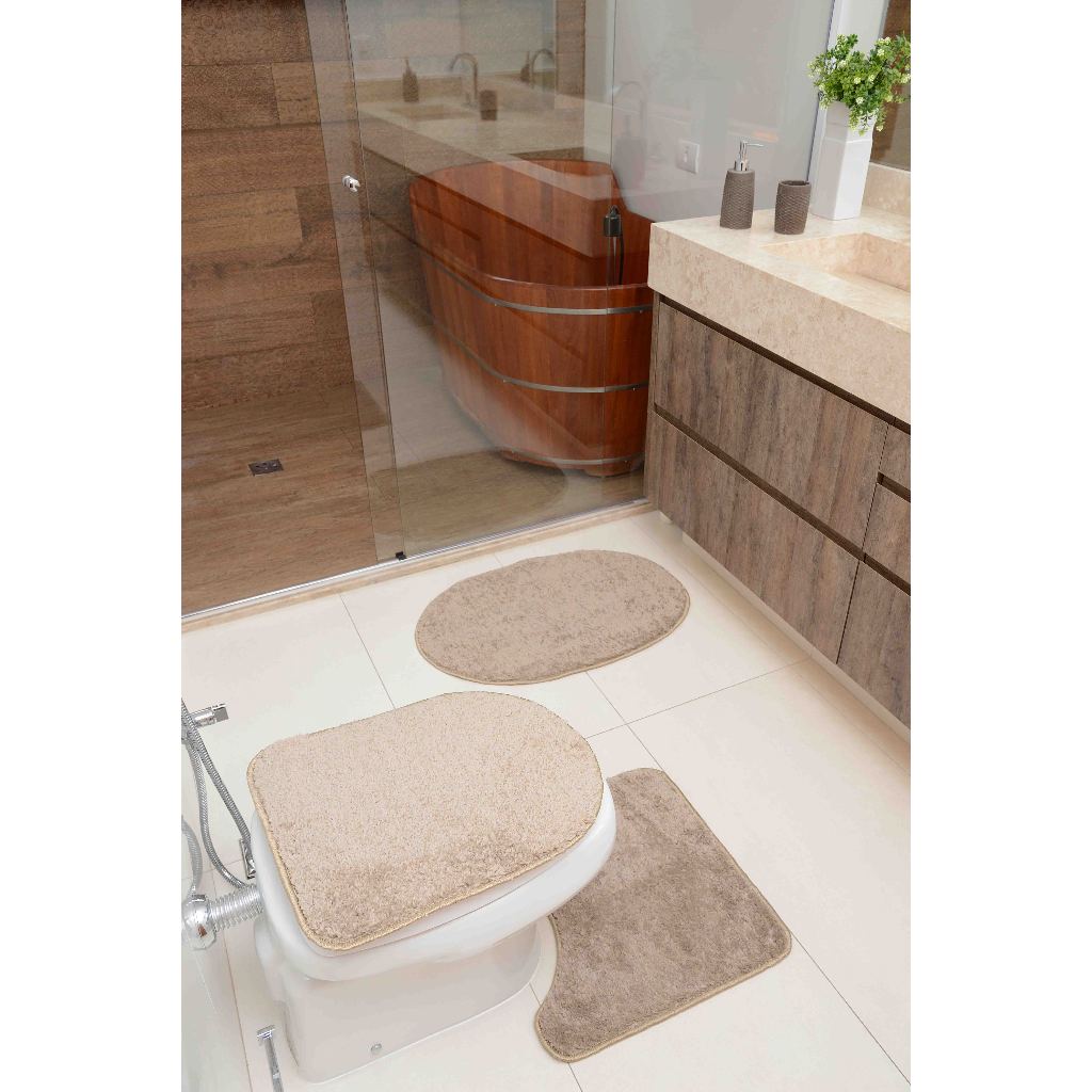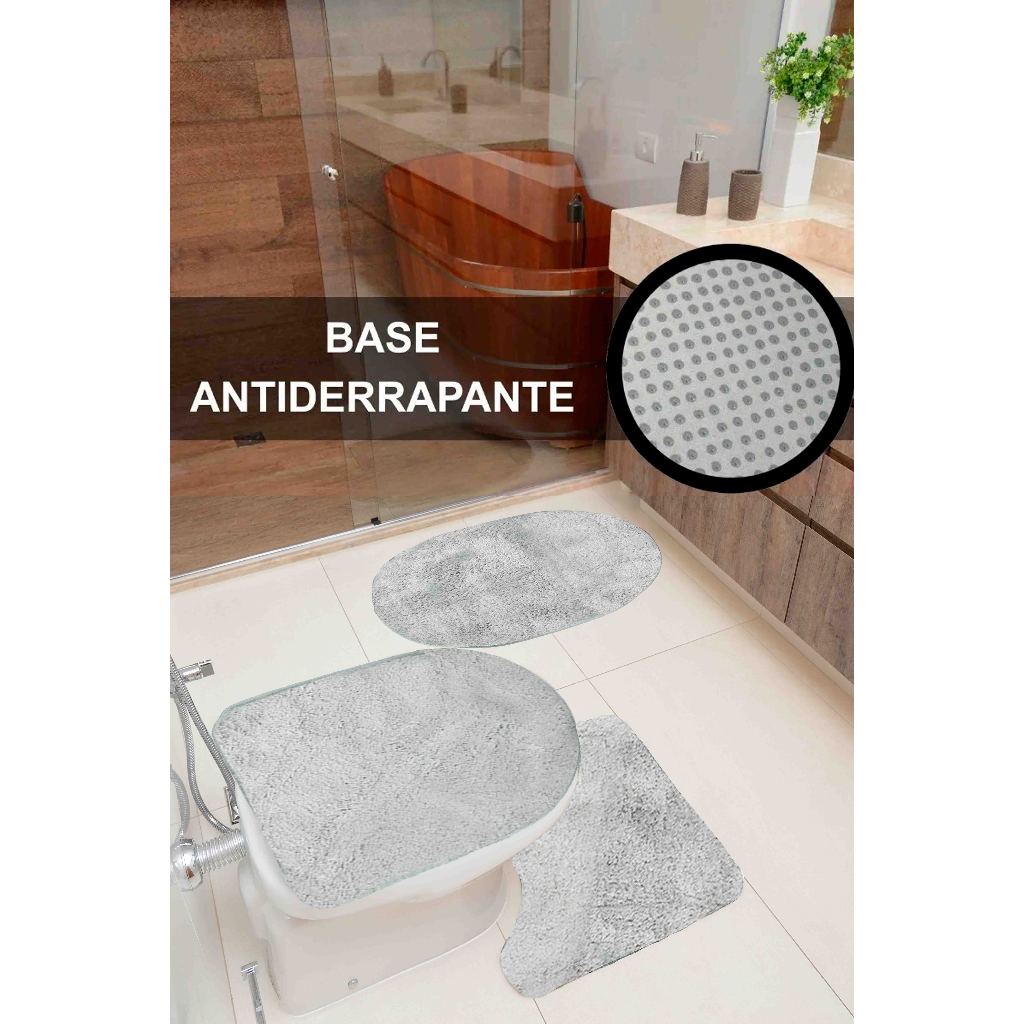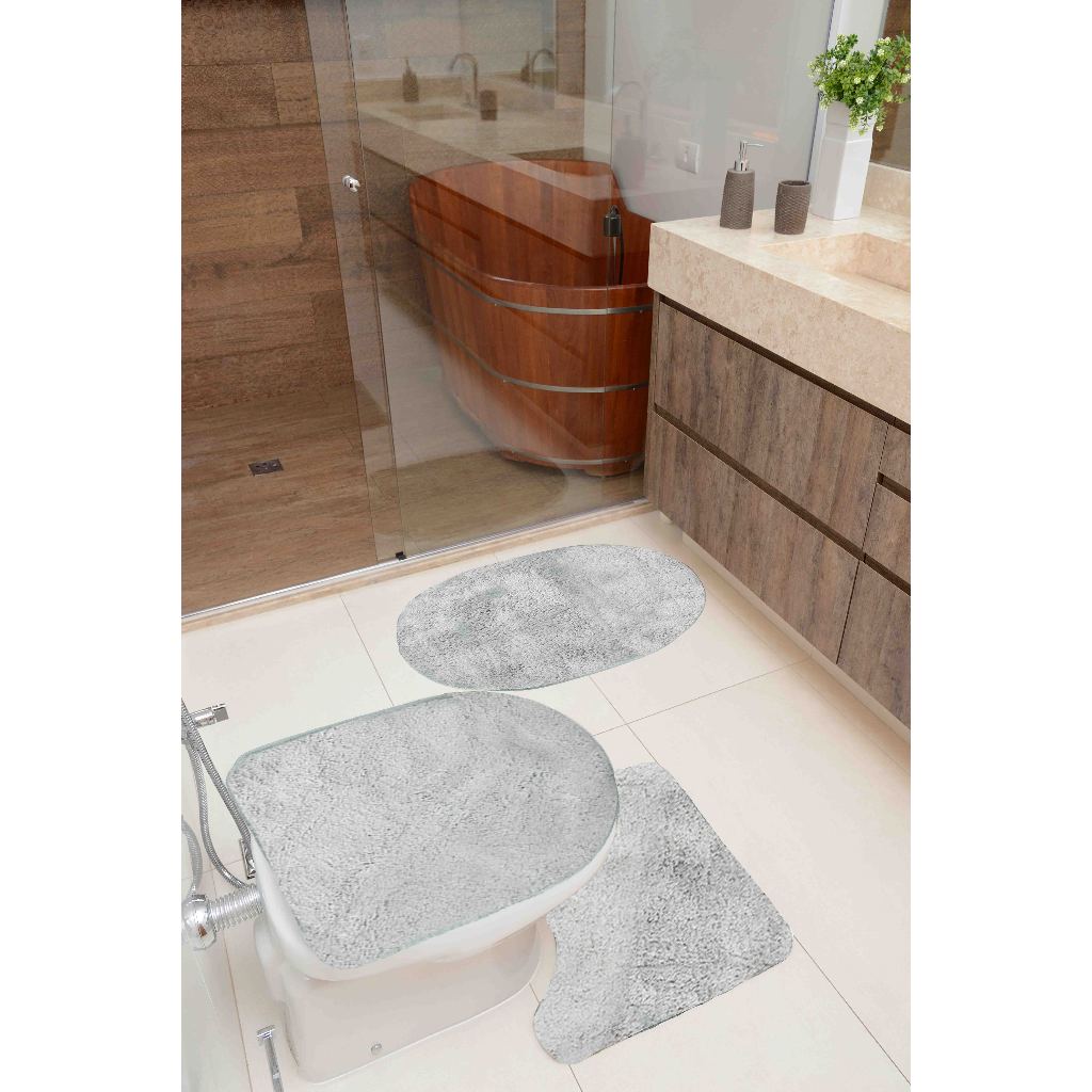 Jogo De Tapete Banheiro 3 Peças Cronos Antiderrapante