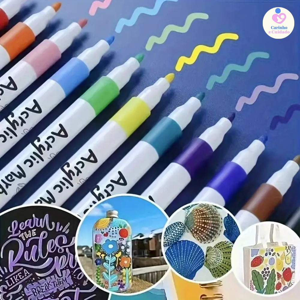Kit 12/24/36/48 Cores Caneta Acrílica Multisuperfície: Madeira, Tecido, Tênis