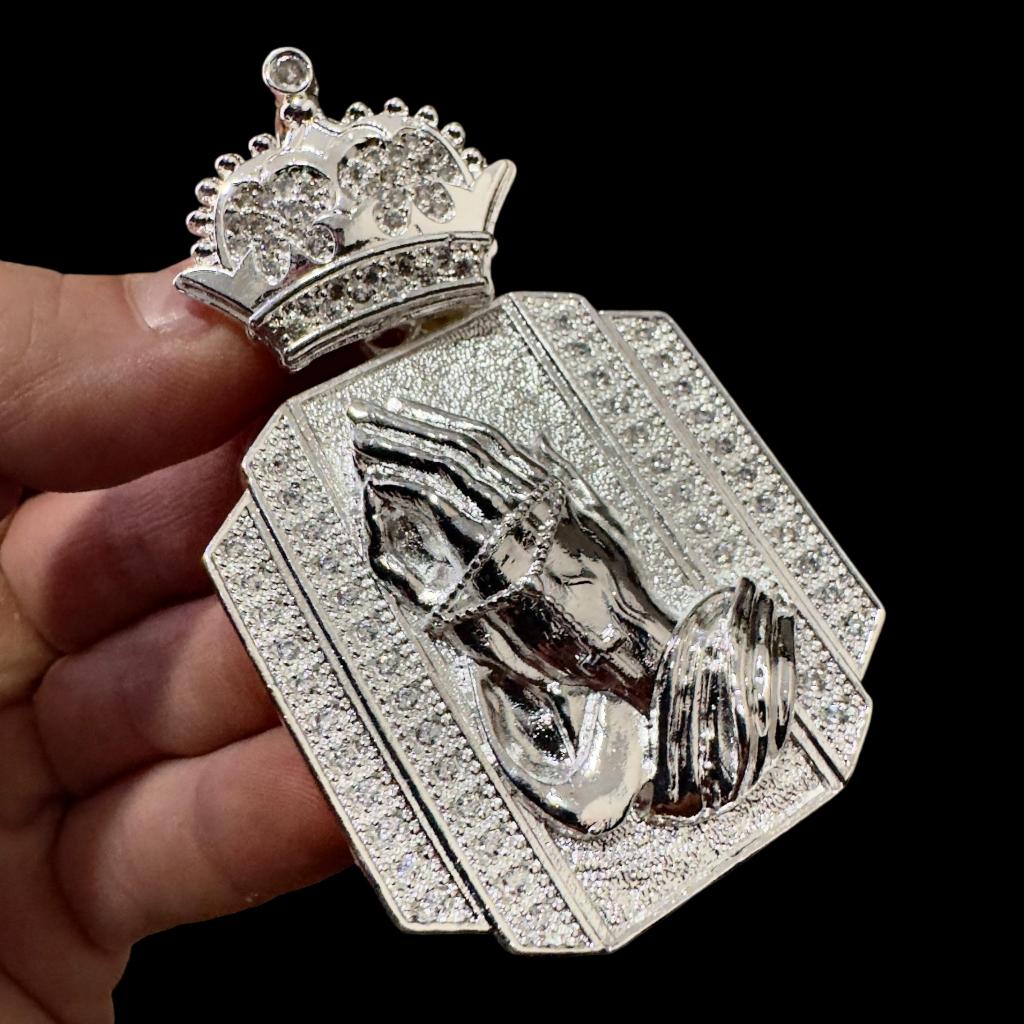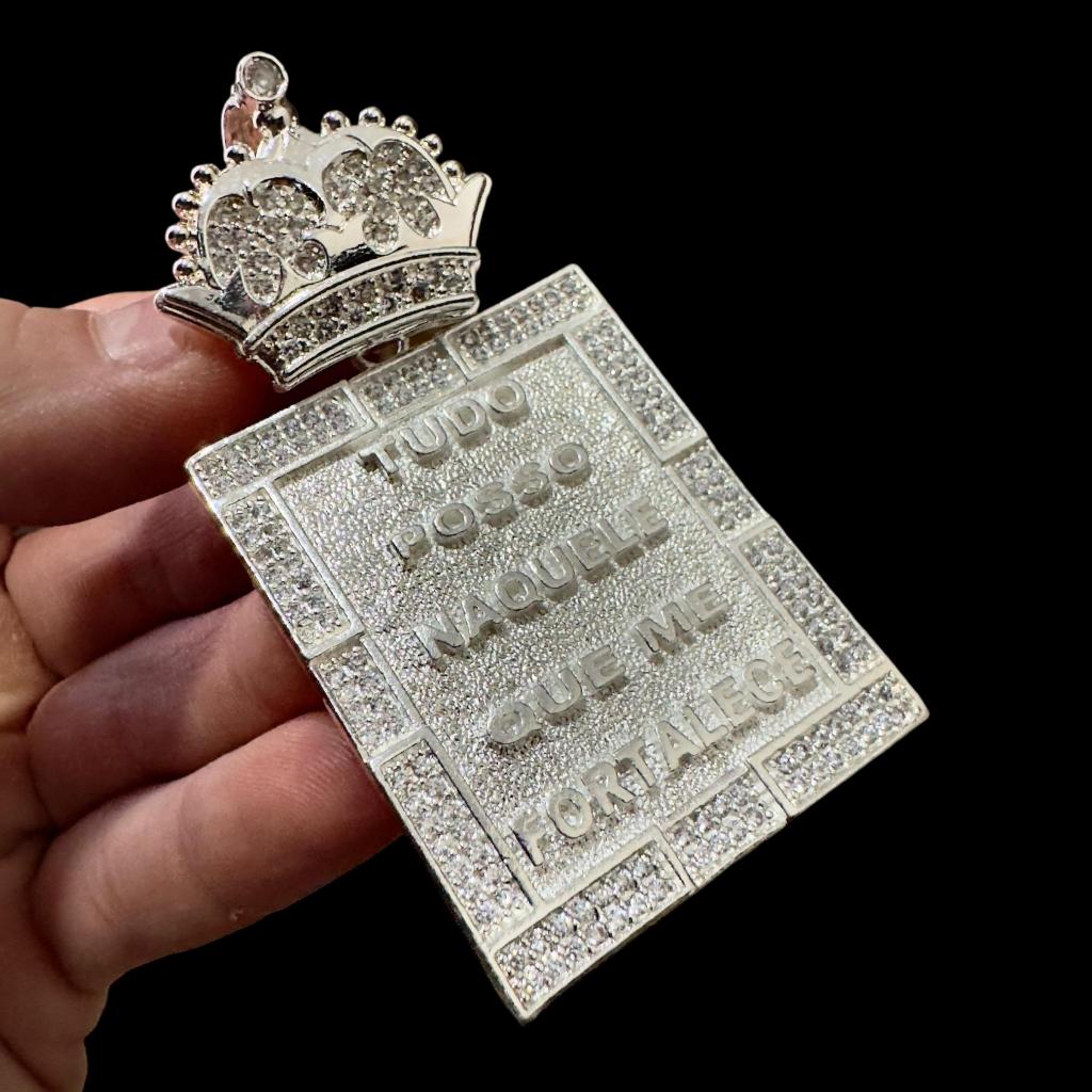 PINGENTE BANHADO NA PRATA 925 JESUS, NOSSA SENHORA, FÉ, CRUZ, PREVALECE, AMÉM