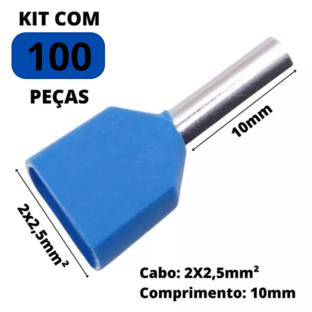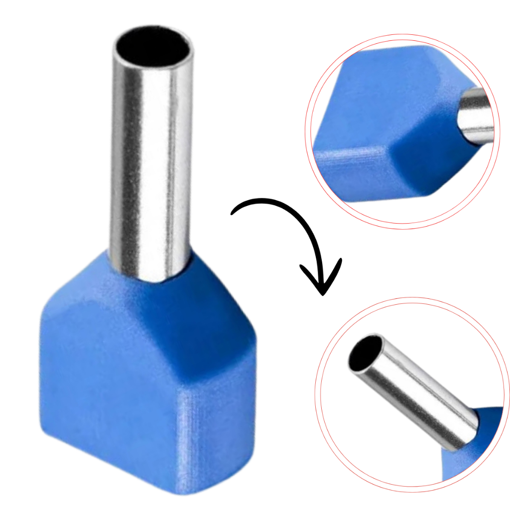 Terminal Elétrico Ilhós Tubular Duplo 2,5mm 100 Unidades