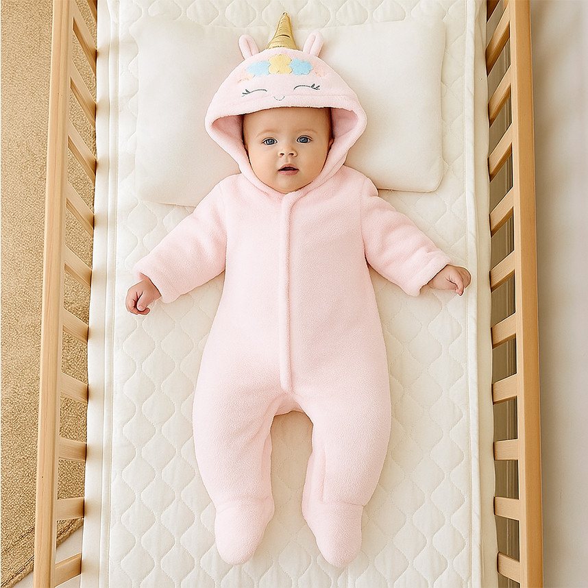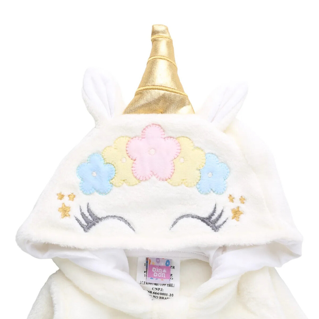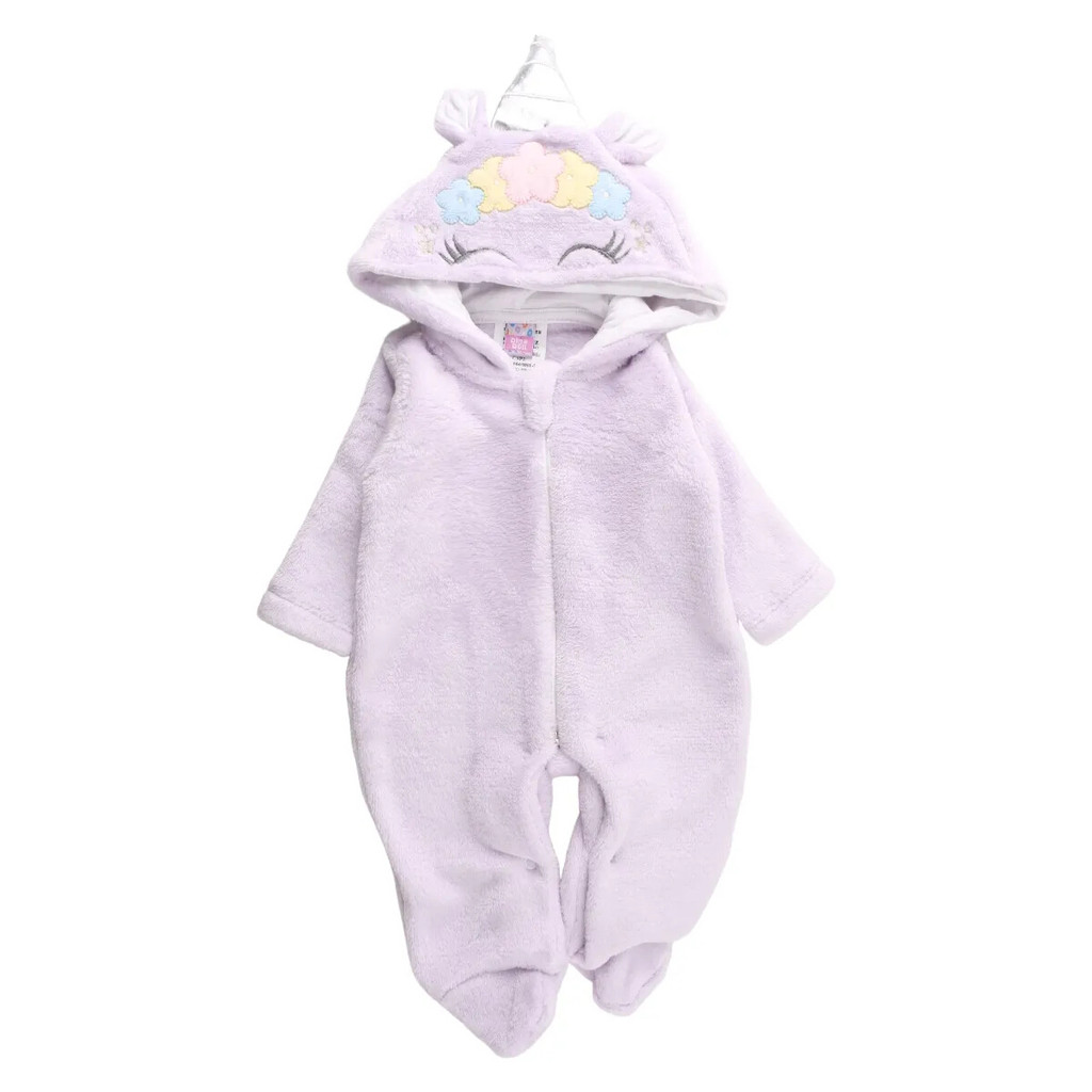 Macacão Longo Bebê Inverno Com Capuz De Unicórnio