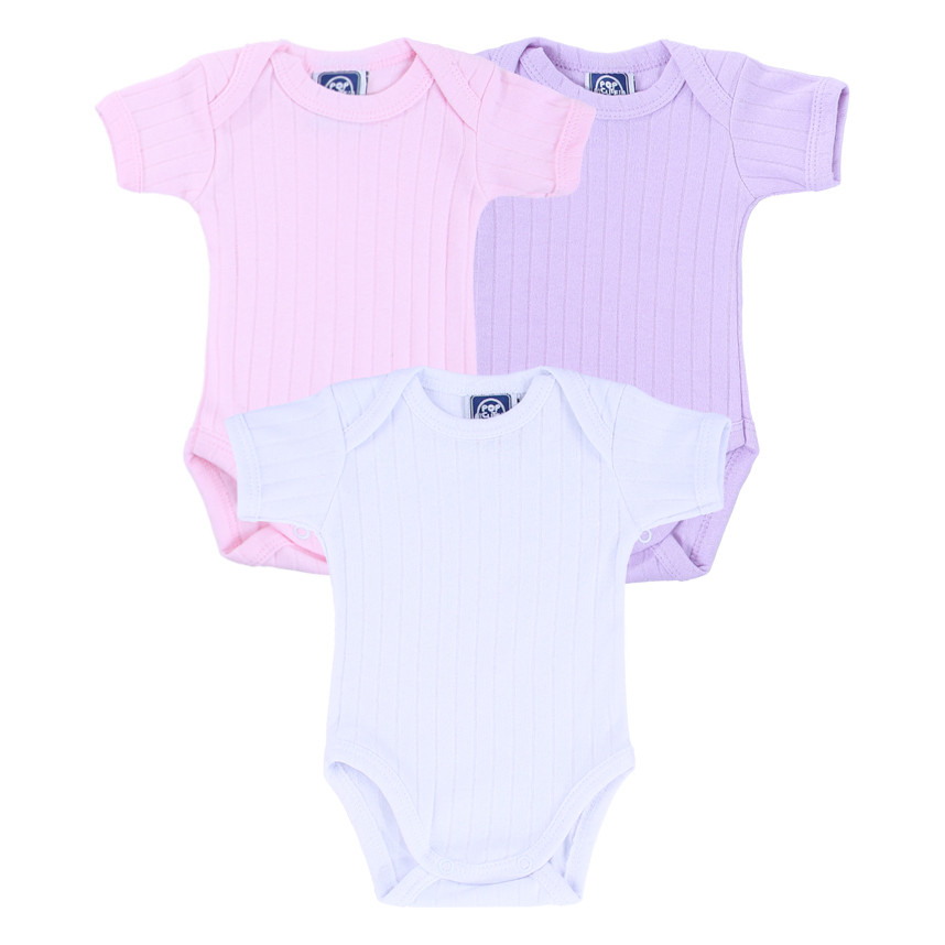 Kit Body Manga Curta Bebê Menina Suedine Liso - 3 Peças