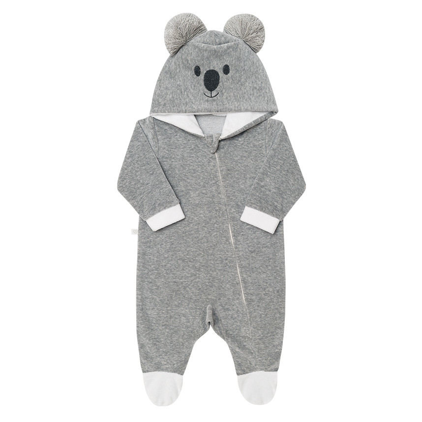 Macacão Fofinho em Plush com Capuz Coala