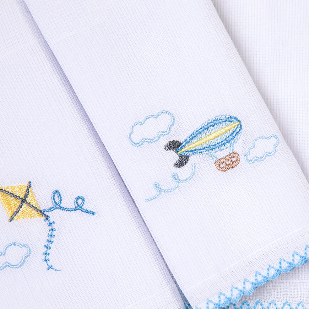 Kit Pano De Boca Bordados Papi Pipa E Balões - 3 Peças