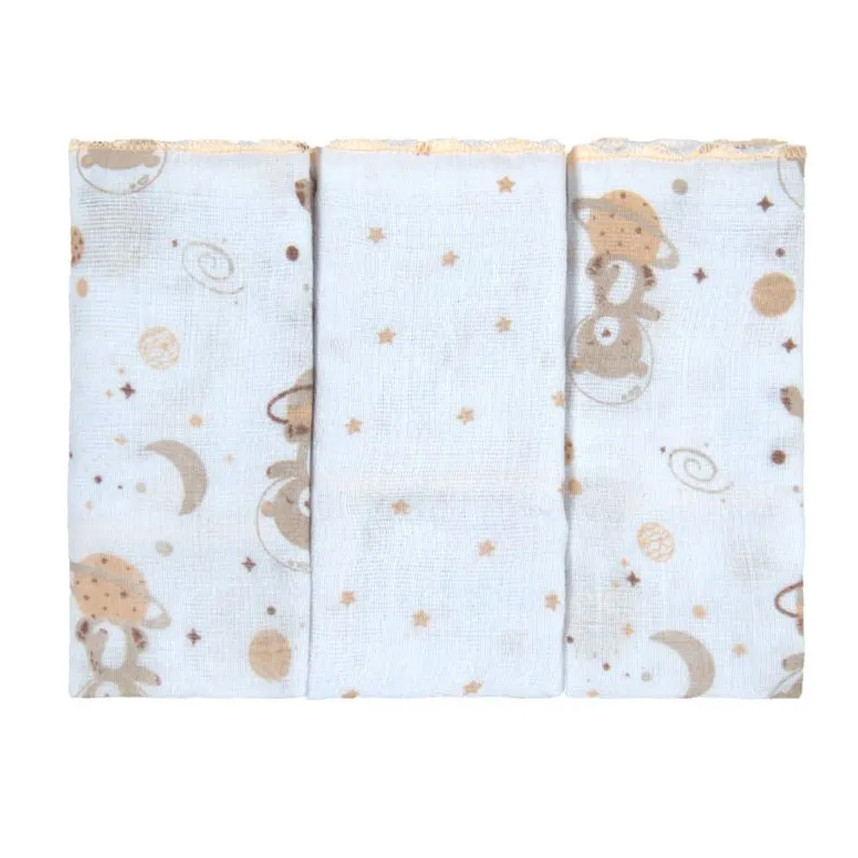 Kit Pano De Boca Bublim Festonê Estampa Urso - 3 Peças