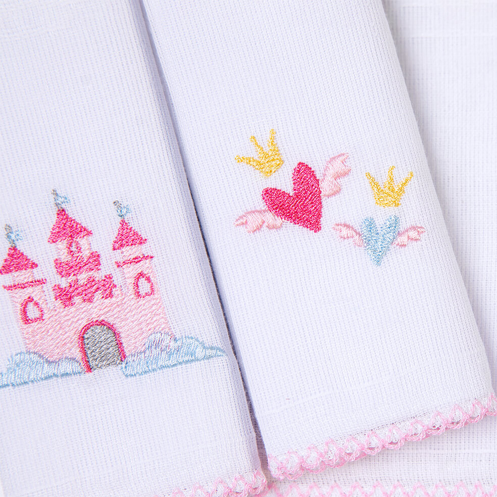 Kit Pano De Boca Bordados Papi Castelo - 3 Peças