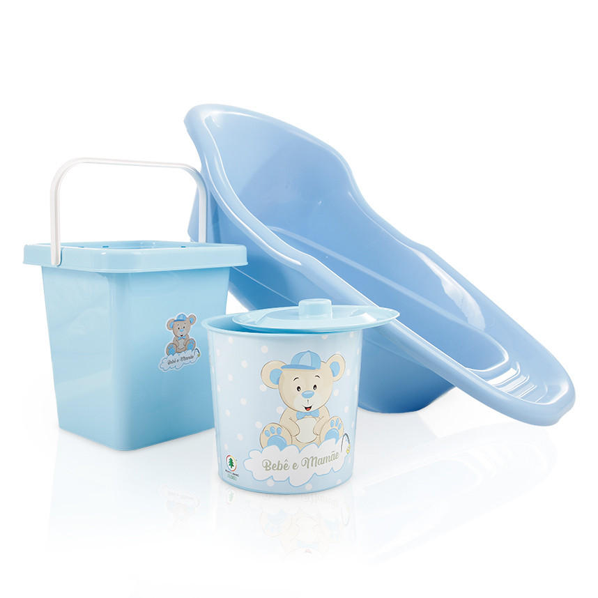 Kit Banheira Bebê com Balde e Lixeira – Estampa Ursinho