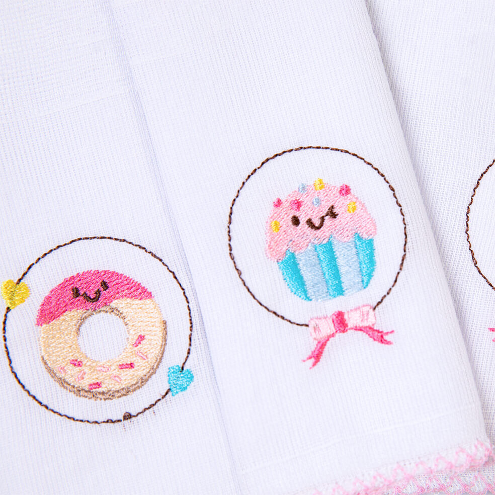 Kit Pano De Boca Bordados Papi Docinhos - 3 Peças