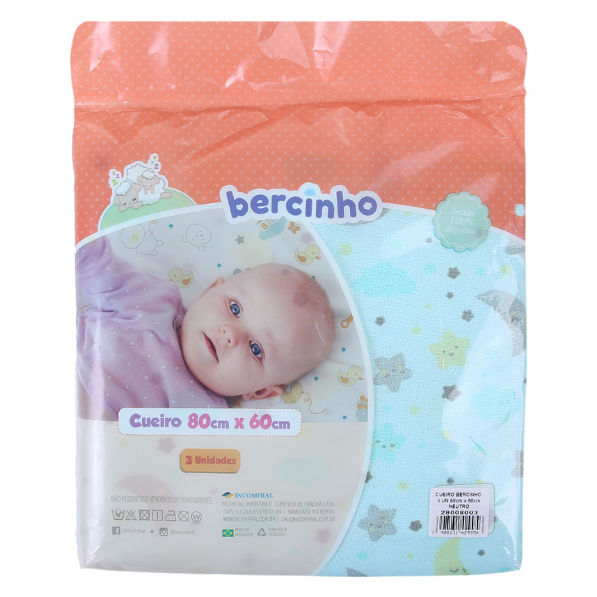 Kit Cueiro Bebê Incomfral Bercinho Neutro 03 peças 80cmX60cm