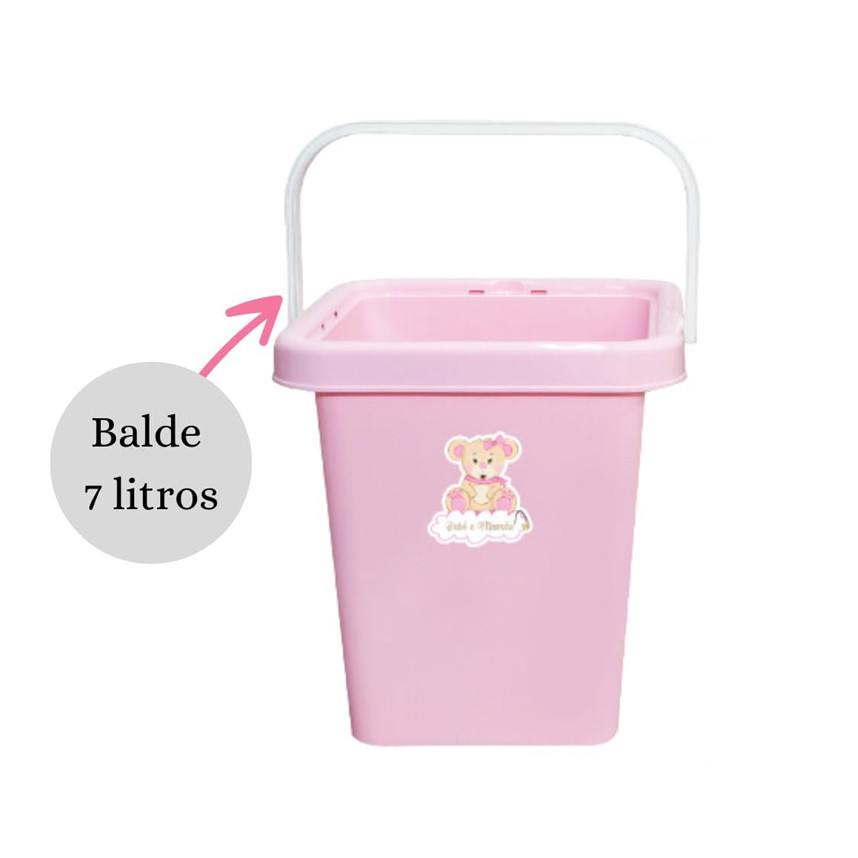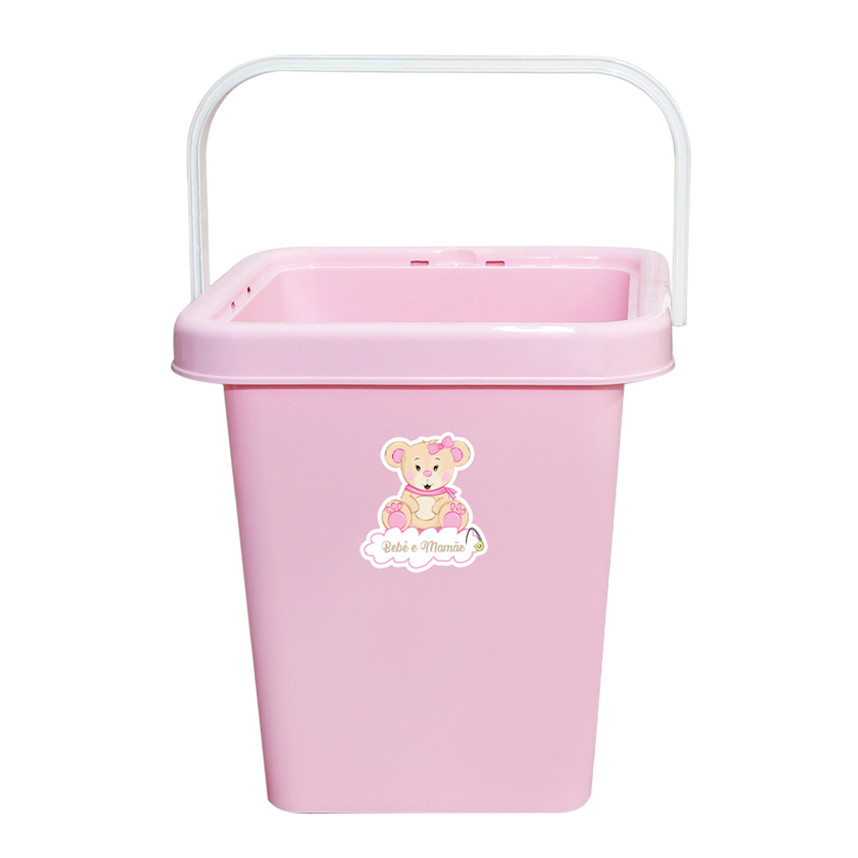 Balde Bebê Monte Líbano Infantil Quadrado Urso 7 Litros Rosa