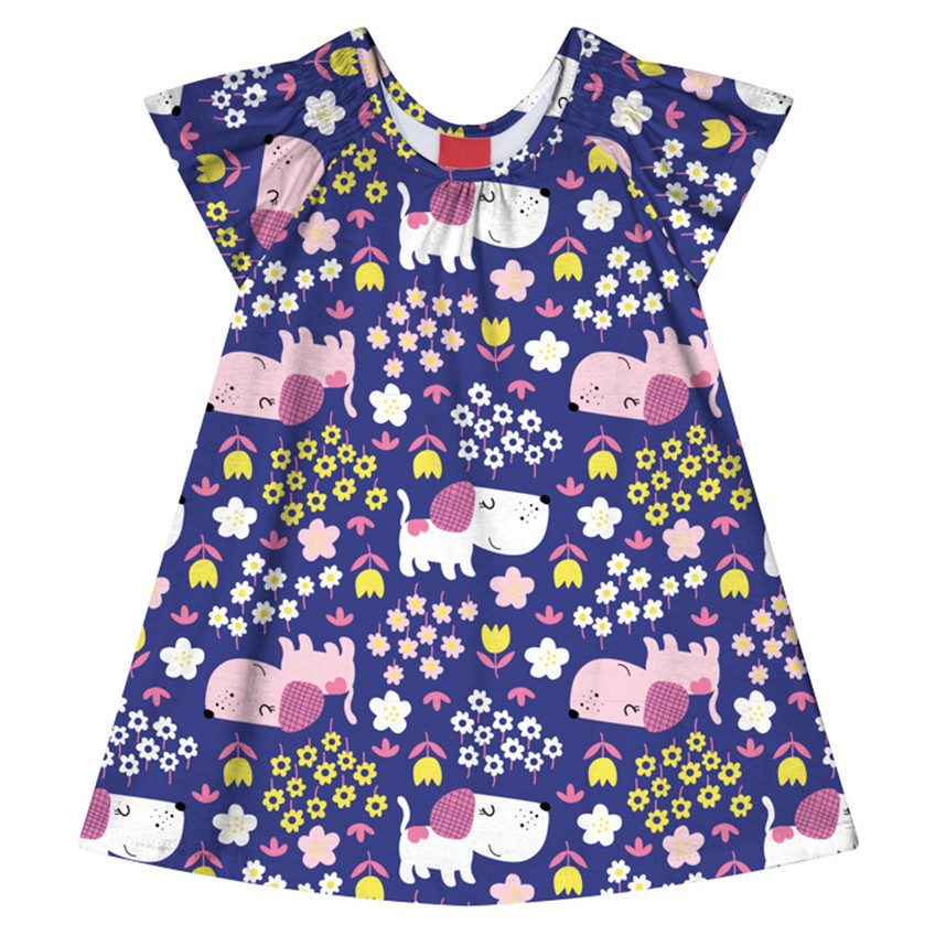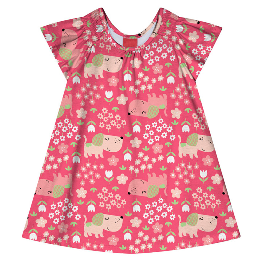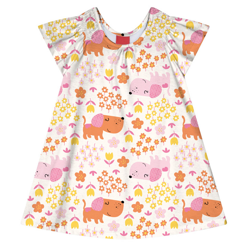 Vestido Bebê Kyly Meia Malha Estampa Cachorrinhos