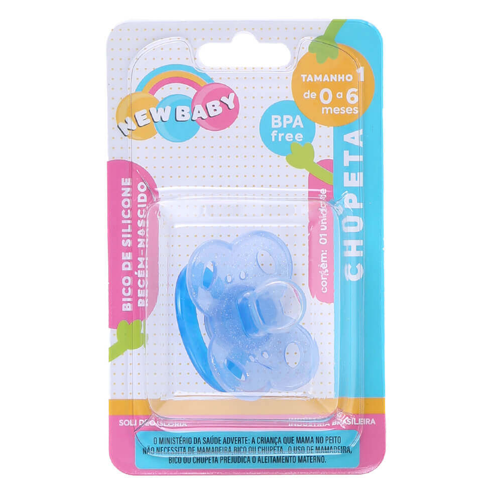 Chupeta New Baby Glitter Silicone Assimétrico Fase 1