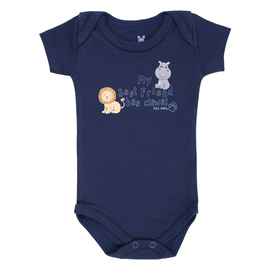 Kit Body Manga Curta Bebê Kiko Baby Suedine Safari - 3 Peças