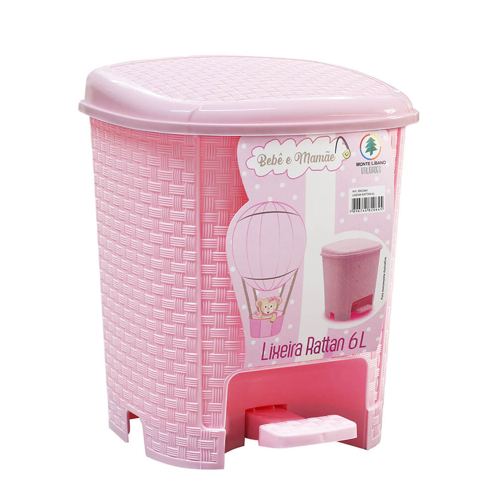 Lixeira Monte Líbano Rattan Bebê E Mamãe 6 Litros Rosa