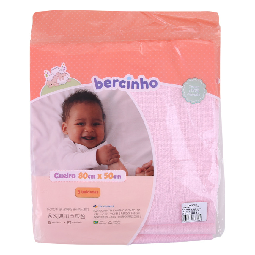 Kit Cueiro Incomfral Bercinho Rosa Com 03 Peças 50cmx80cm