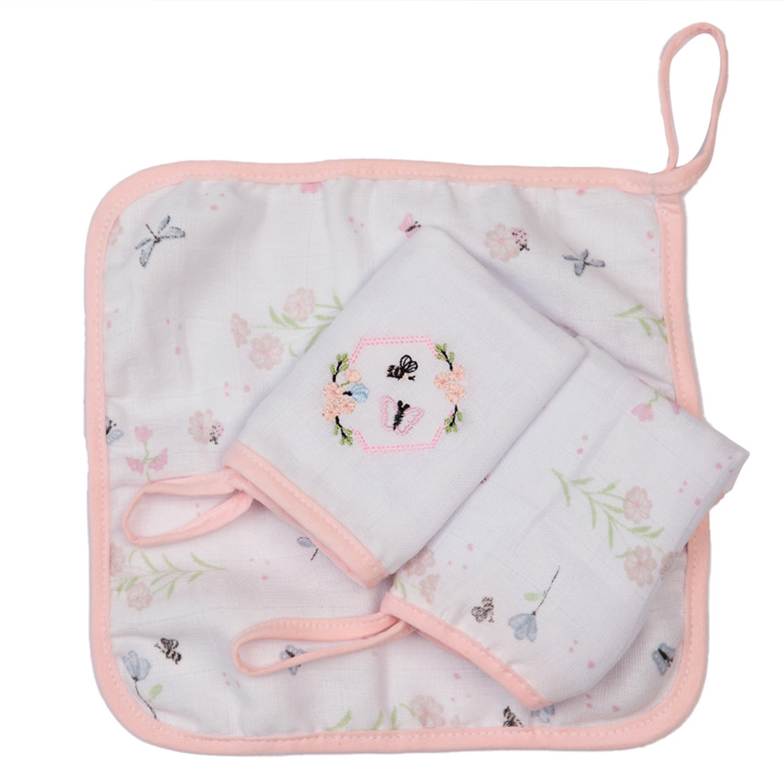 Kit Pano De Boca Papi Bordado Com Prendedor Flores - 3 Peças