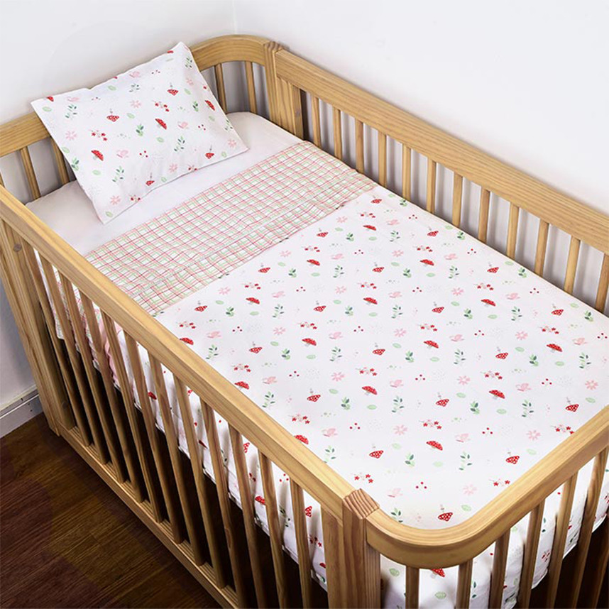 Jogo Lençol Berço Americano Dengo Estampa Cogumelo 03 Peças